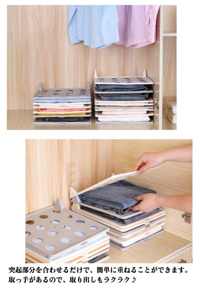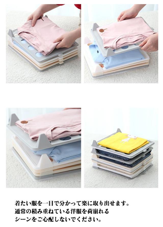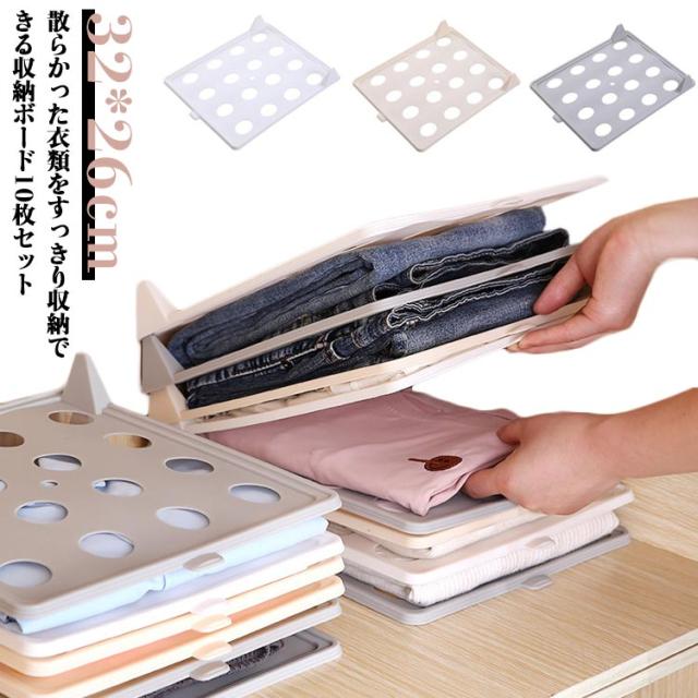 | 散らかった衣類をすっきり収納できる収納ボード10枚セット どんな衣類も同じ大きさにたためて、常に整理された状態でキープできます。 着たい服を一目で分かって楽に取り出せます。通常の積み重ねている洋服を荷崩れるシーンをご心配しないでください。 突起部分を合わせるだけで、簡単に重ねることができます。取っ手があるので、取り出しもラクラク♪ クローゼットや衣装ケースなど様々な場所に設置できるのも嬉しいですね。 | |
