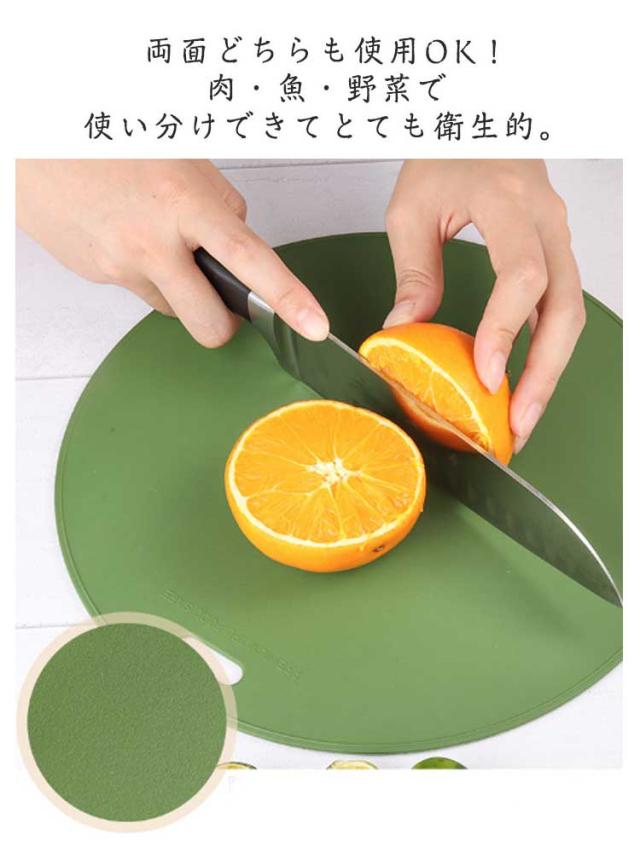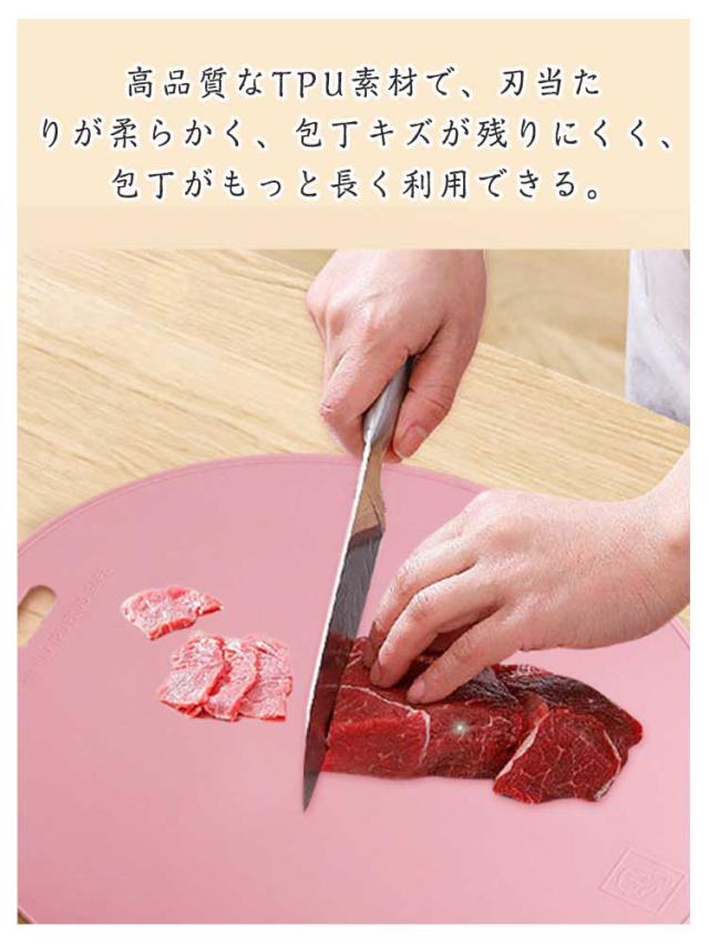 | 台所が綺麗に見えるお洒落なデザインの丸型まな板。 両面どちらも使用OK!肉・魚・野菜で使い分けできてとても衛生的。 高品質なTPU素材で、刃当たりが柔らかく、包丁キズが残りにくく、包丁がもっと長く利用できる。 まな板の両面に滑り止めがついてるので安全に使用することができます。 自由に曲げることができて扱いやすく食材をこぼさず移動することが可能。 軽く洗い流すだけで汚れが落ちてお手入れ楽ちん。 吊り下げて収納できるフック穴はパスタメジャーにもお使い頂けます。 | |