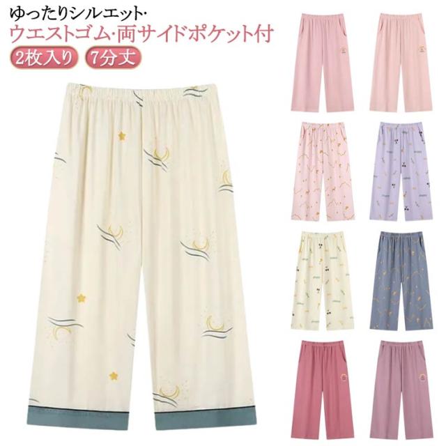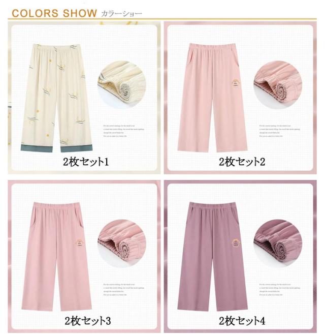 夏 2枚入 ひざ下 パジャマ レディース 花柄 婦人 ルームウェア 可愛い 夏 ズボン ルームパンツ 7分丈 夏用 ボトムス イージーパンツ 女性 カプリパンツ 部屋着 リラックス 涼しい かわいい 2枚入 おしゃれ 大きいサイズ ゆったり 薄手
