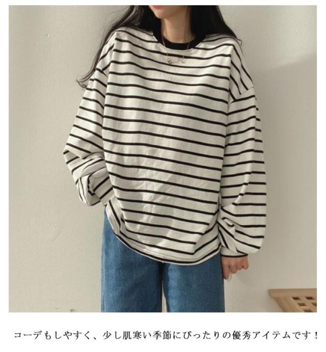 カットソー かわいい 長袖Tシャツ ボーダー柄 レディース トップス 長袖 ボーダー柄 大きいサイズ ゆったり おしゃれ tシャツ きれいめ 裏起毛なし 裏起毛付き 韓国ファション S M L XL 2XL
