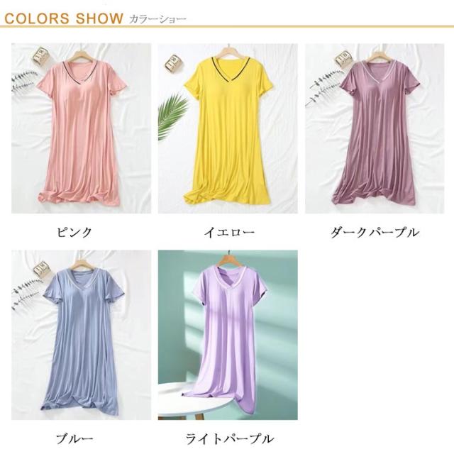 カップ付き 部屋着 パジャマ ワンピース カップ付き ルームウェア vネック ネグリジェ 涼しい 寝間着半袖 ひんやり 春 アイスシルクネグリジェ 薄手 パッド付 可愛い 涼感ワンピース 体型カバー ナイトウエア ストレッチ