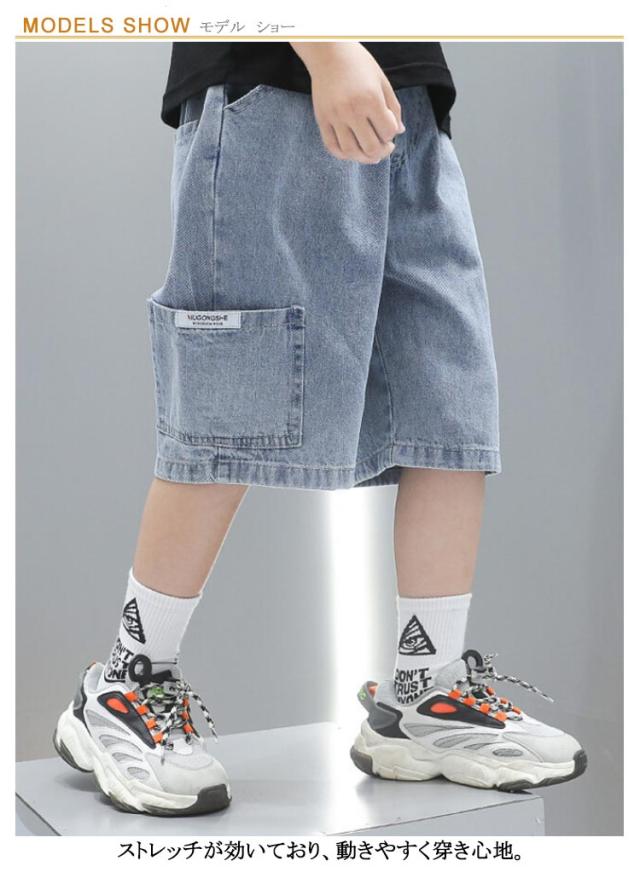 デニムハーフパンツ キッズ 子供服 半ズボン ショートパンツ デニム 子ども 110〜170cm ゆったり キッズ ハーフパンツ ジーンズ Gパン 短パン カジュアル ウエストゴム 男の子 ボトムス 着回し 韓国子供服 ダンス 幼稚園 小学生
