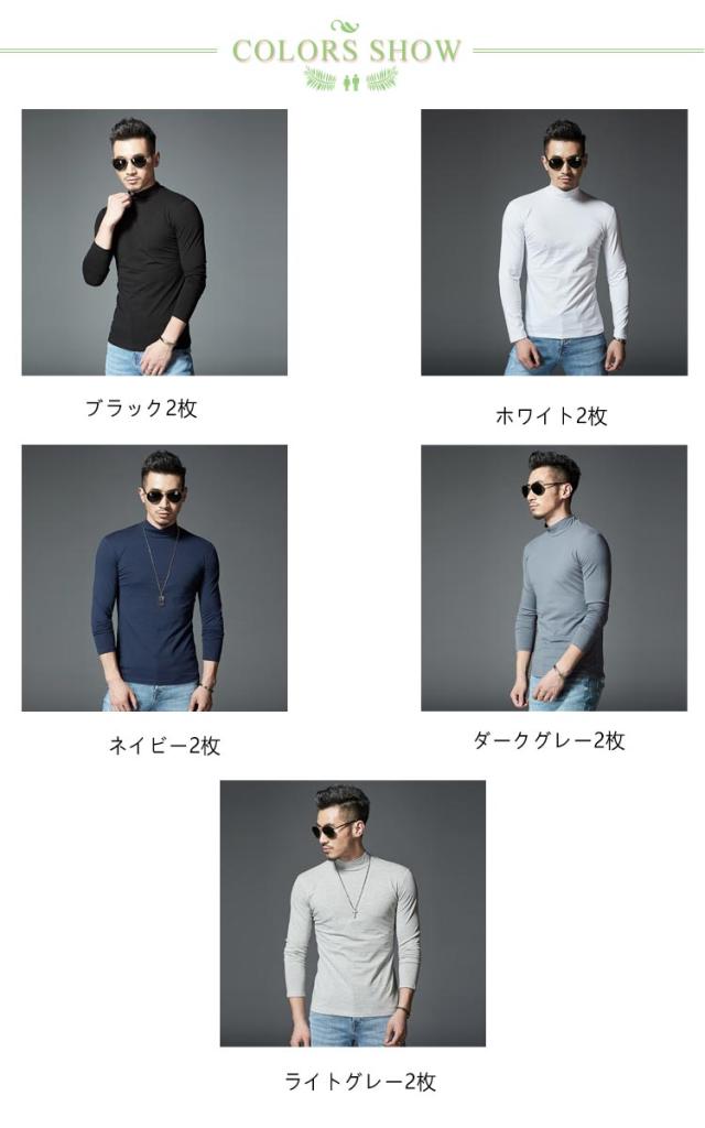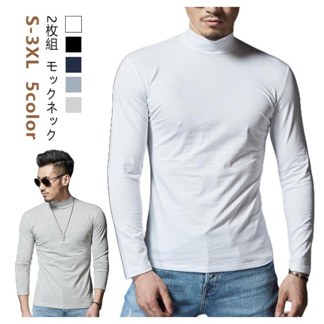 【2枚セット】Tシャツ メンズ 長袖 ロンT 無地 ハイネック タイトフィット 長袖Tシャツ インナー モックネック カットソー 白 黒 ホワイト グレー 無地 細身 スリム 秋 秋服 秋物 秋冬 吸汗速乾 アンダーシャツ タートル スポーツ 現場 作業着 作業服