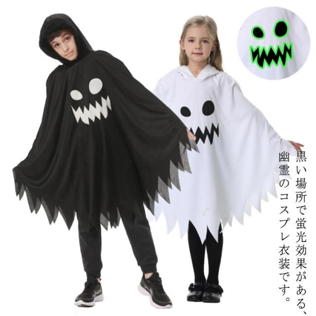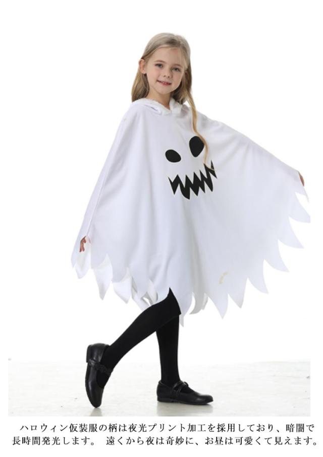 幽霊 ハロウィン おばけ コスプレ ゴースト 仮装 ポンチョ かわいい ゴースト 子供 ハロウィン 女の子 マント ハロウィン 衣装 ワンピース コスチューム ベビー キッズ ジュニア パーティーグッズ 蛍光効果 Halloween