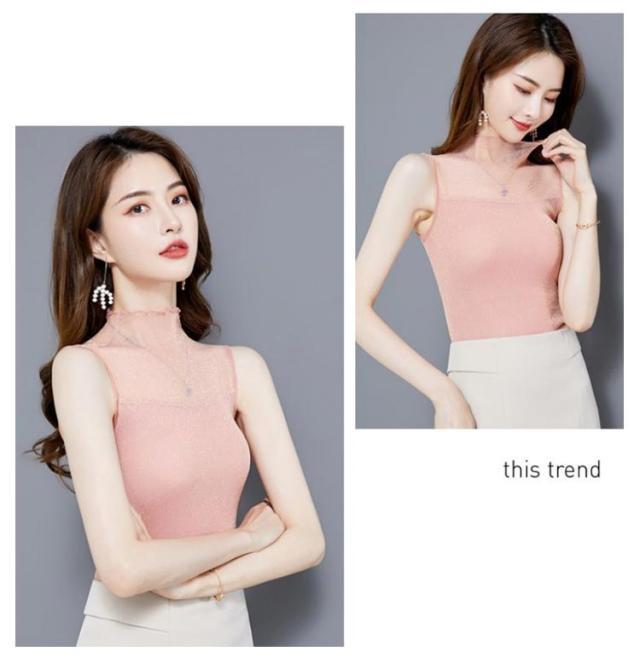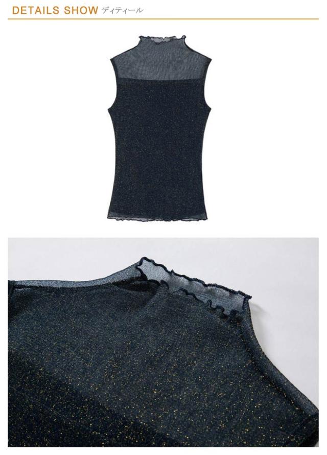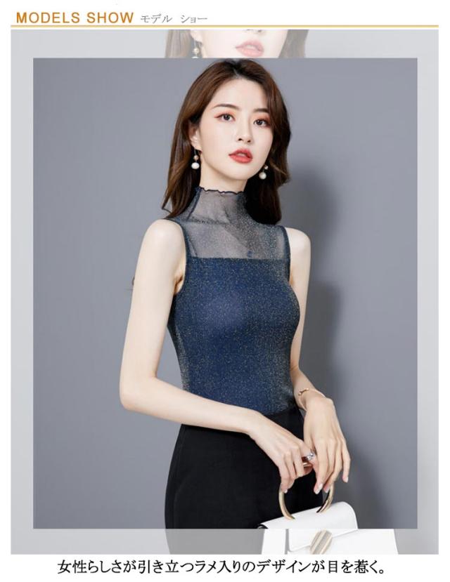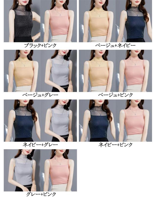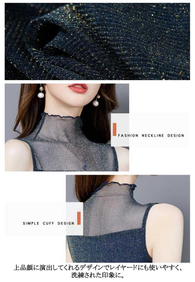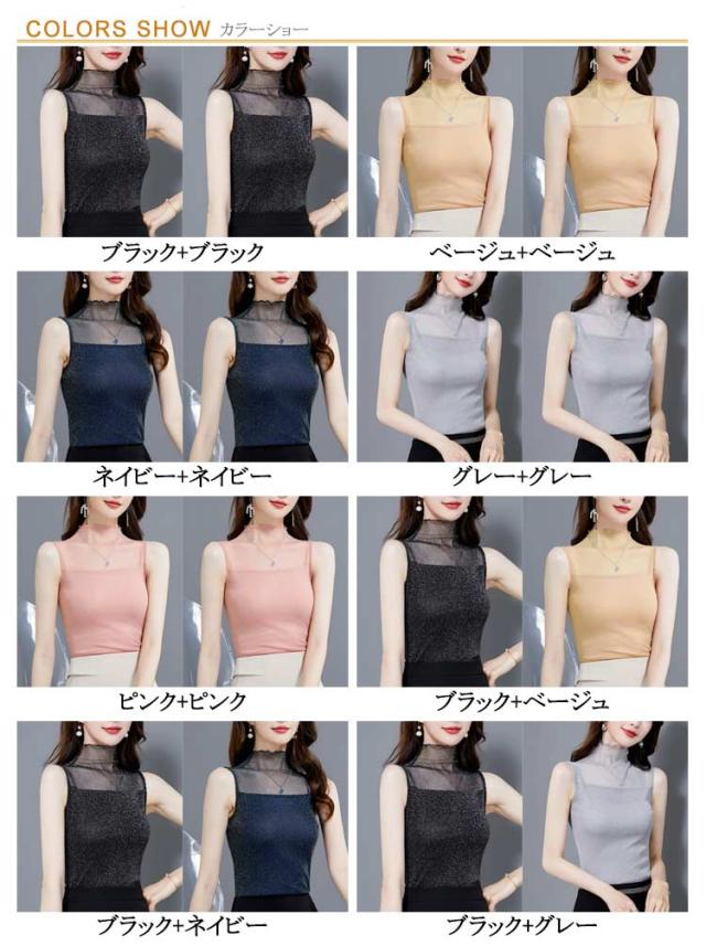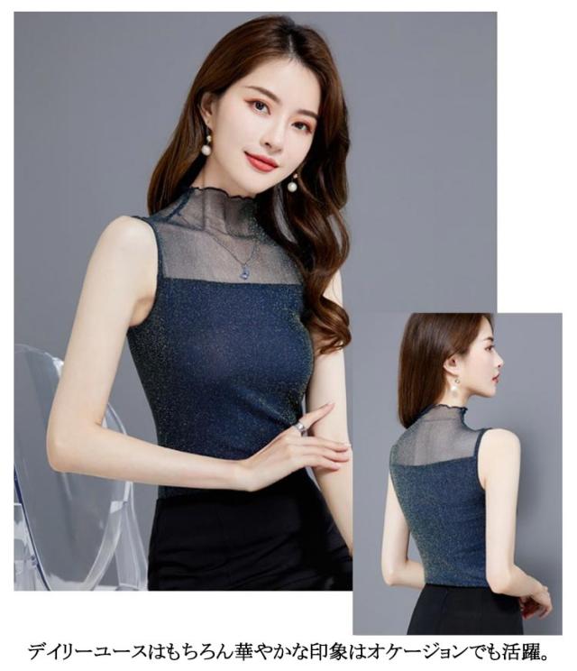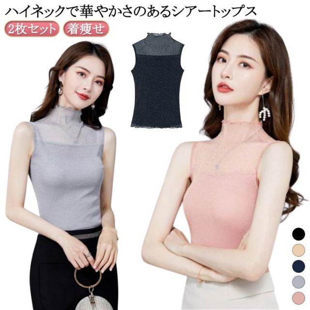 レディース シアー 袖なし 2枚セット ノースリーブ 夏 シアー ラメ入り インナー ハイネック 春 インナー Tシャツ タートルネック トップス ラメ入り ハイネック 透け ストレッチ素材 無地 通勤 おしゃれ 上品 着痩せ タンクトップ