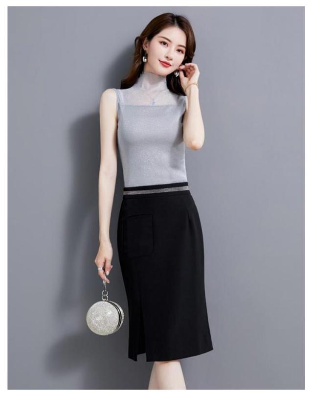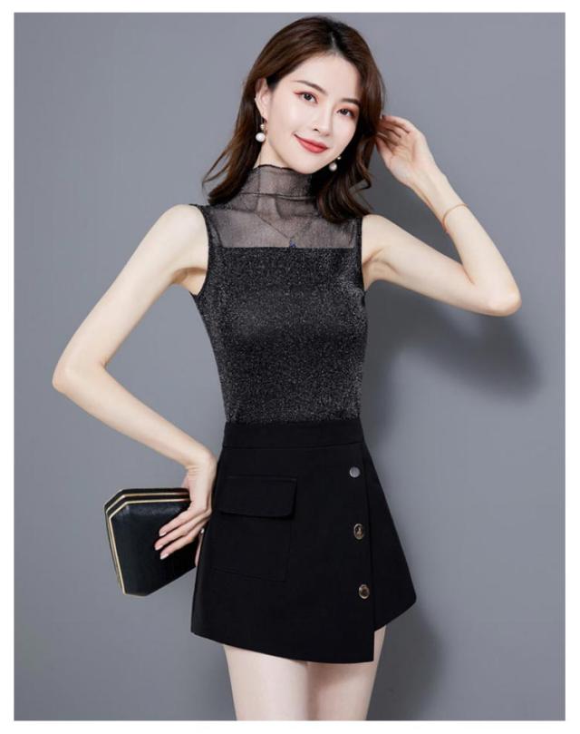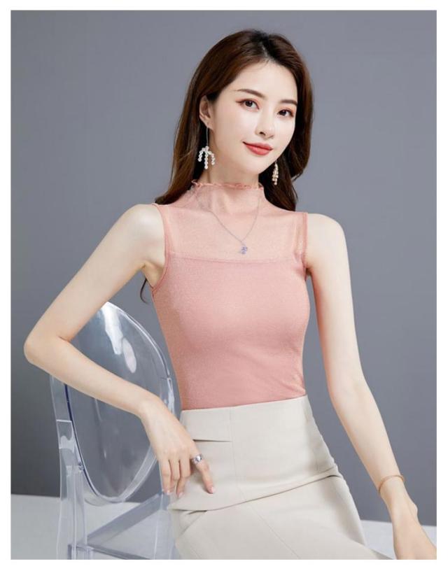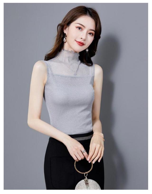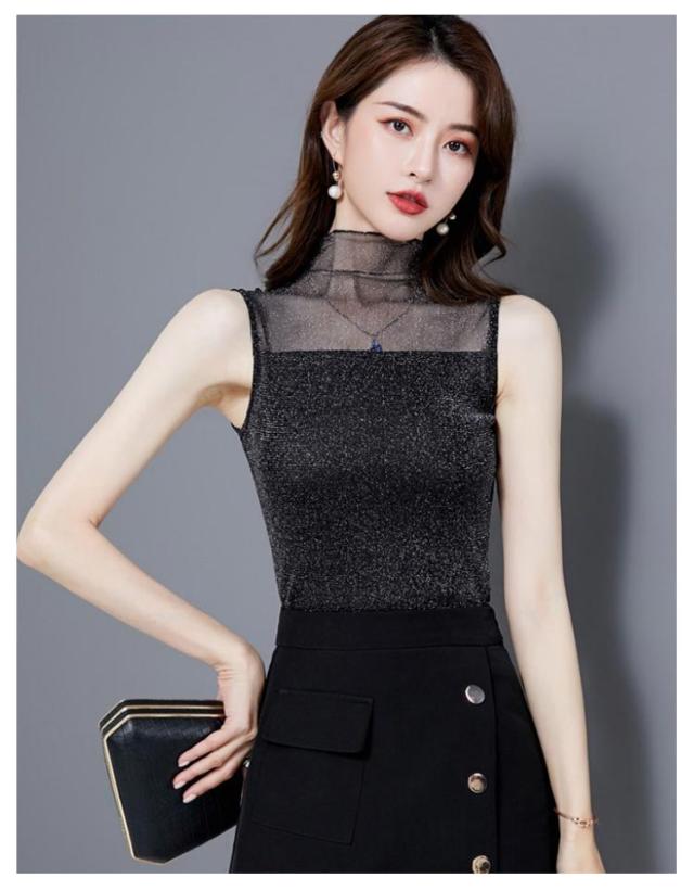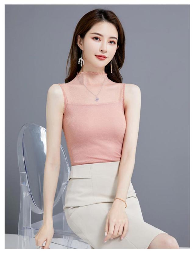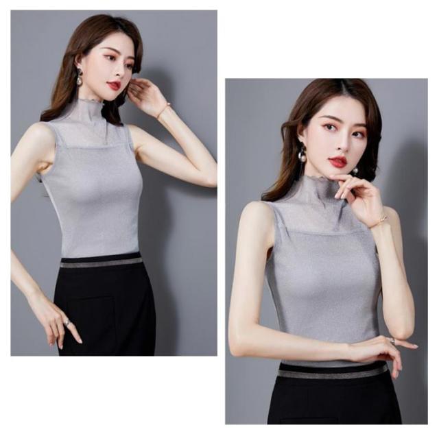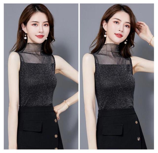 レディース シアー 袖なし 2枚セット ノースリーブ 夏 シアー ラメ入り インナー ハイネック 春 インナー Tシャツ タートルネック トップス ラメ入り ハイネック 透け ストレッチ素材 無地 通勤 おしゃれ 上品 着痩せ タンクトップ