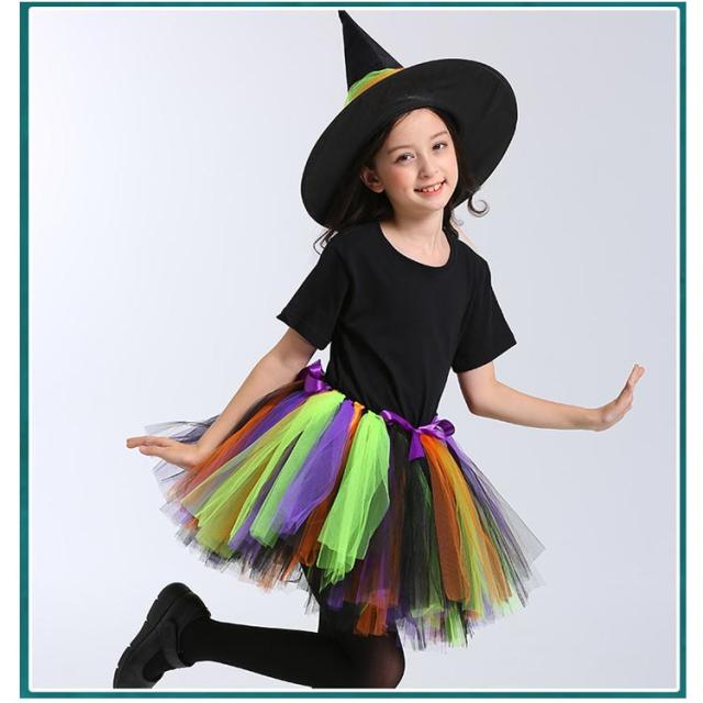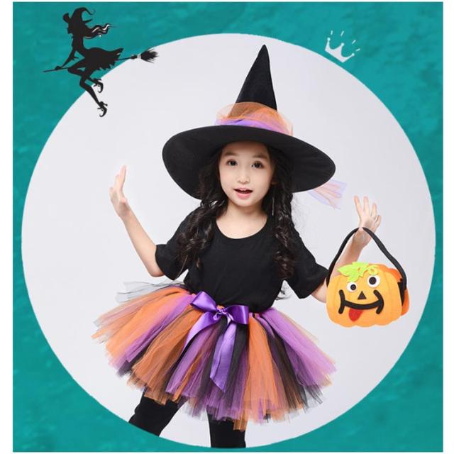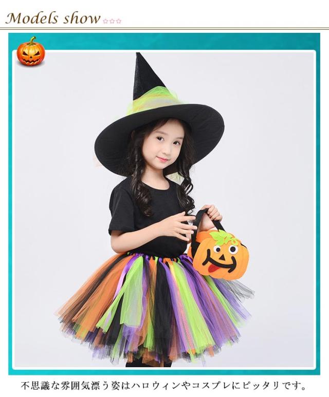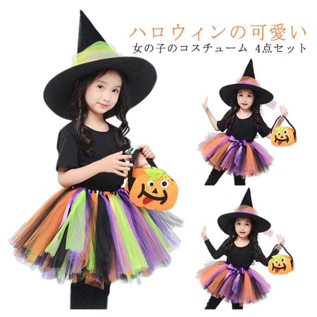 コスプレ 衣装 女の子 スカート 魔女 小学生 ハロウィン ワンピース ハロウィン キッズ 変身 コスチューム かぼちゃ 魔法使い 変装 洋服 4点セット 姫系 カラフルドレス Halloween 子供 巫女 キッズ 子どもドレス 女の子 悪魔