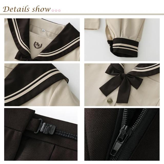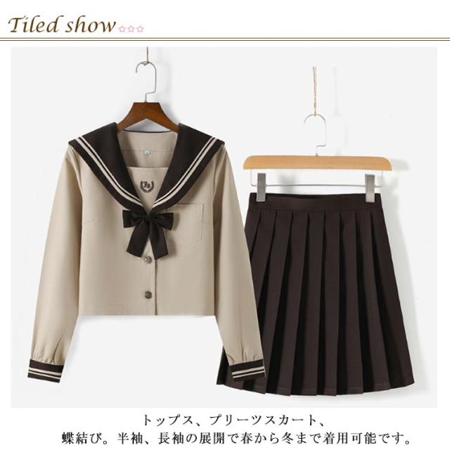 女子高生 コスプレ レディース制服 スカートスーツ 衣装 ハロウィン コスチューム 長袖 仮装 学生服 茶色 セーラー服 上下セット 女子制服 JK制服 3点セット 高校生 学生 学園祭 文化祭 コスプレ衣装 可愛い JK服 学園祭 大人