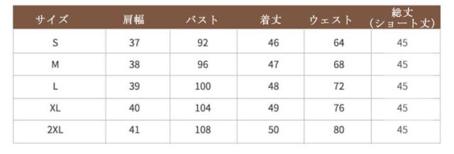 | サイズ | S M L XL 2XL |