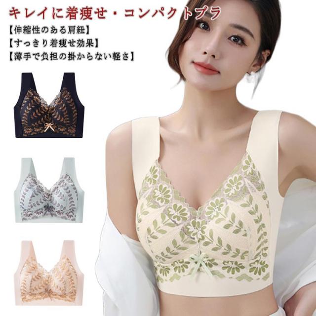 ナイトブラ ハーフトップ 【2枚セット】胸を小さく見せるブラ 脇高 着やせ レース ノンワイヤー ブラジャー はみ肉 レース シームレス 大きいサイズ 無縫製 ブラ スッキリ ワイヤレス 小さく見せるブラジャ 大きな胸を小さく見せる ブラジャー 胸が小さく見える