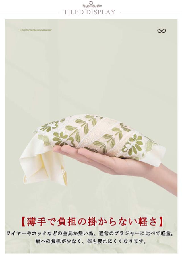 | キレイに着痩せ・コンパクトブラ 【しっかりフィットするカップ入り】 胸の形にフィットし、しっかり包み込んでくれるカップ入り。 たるみを防いでキレイなボディラインを保ってくれます。 【伸縮性のある肩紐】 伸縮性とホールド力を兼ね備えた仕様の肩紐。 幅広で滑りにくく、上に着るものに響かないシームレスデザインです。 【すっきり着痩せ効果】 脇にできる段差・胸元にできる段差をしっかり収納。 上半身をすっきり見せてくれるので着痩せ効果も抜群です。 【トップスに響かないデザイン】 着痩せ効果をアップさせるシームレスなデザイン。 トップスに響かないのでコーディネートの幅を狭めません。 【薄手で負担の掛からない軽さ】 ワイヤーやホックなどの金具か無い為、通常のブラジャーに比べて軽量。 肩への負担が少なく、体も疲れにくくなります。 【やわらかで快適な付け心地】 伸縮性のある柔らかな生地を使用。 締め付け感の無い快適な着心地を実現しました。 【通気性の良いシームレス素材】 通気性が良く蒸れにくい素材。 抜群の機能性で一年を通して快適に着用していただけます。 | |
