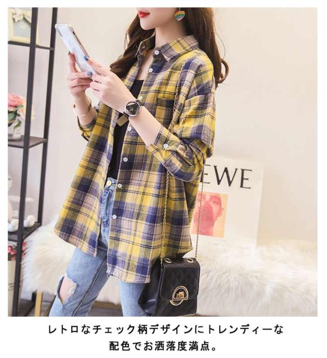 | 大人可愛いチェック柄シャツ 1枚でも重ね着でも春秋冬の着回しに活躍!何枚持っていても飽きないし困らない優秀アイテム。 レトロなチェック柄デザインにトレンディーな配色でお洒落度満点。 ゆとりある着心地の良さで、締め付けもなくリラックスして着用出来るのも◎ メイン使いはもちろん、前ボタンを開ければライトな羽織り代わりとしても活躍してくれます。いつものコーデのアクセントして馴染んでくれます! | |