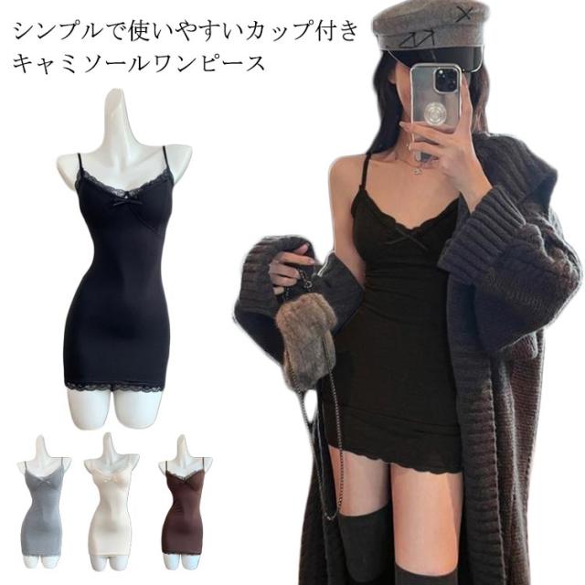 スリップ ワンピース ペチコート ワンピース キャミワンピ 黒 ブラカップ付き カップ付き 透け防止 ルームウェア 美シルエット ワンピース 透け防止 キャミ 部屋着 ブラトップインナー 夏 ブラック グレー ベージュ コーヒー