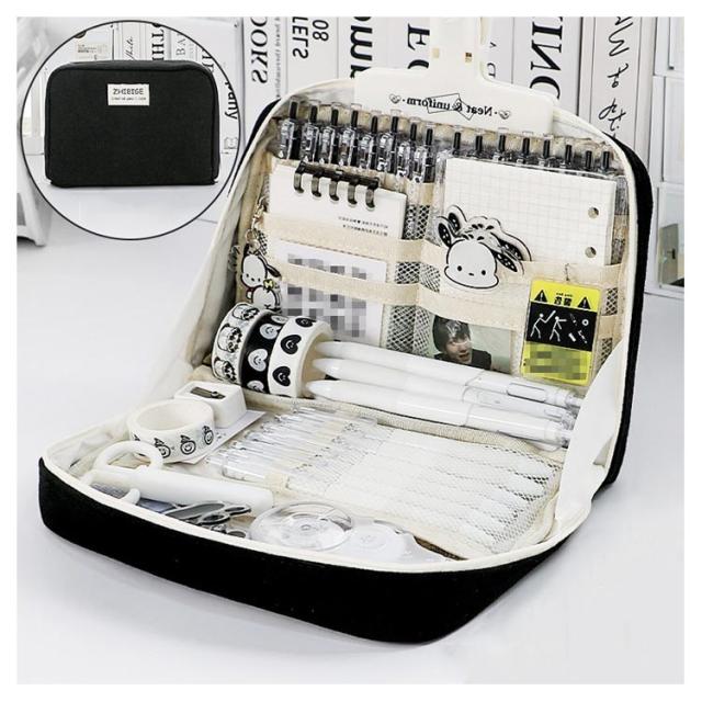 | 手帳も文房具も、全部ひとつにまとめたい! 学校やカフェやオフィスで、いつでもお気に入りの文房具を使いたい! 全8ポケットでたくさんのペンや手帳用シールやハサミなど収納できます。 | |