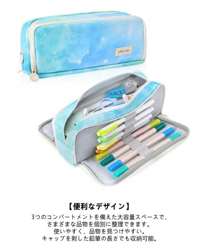 | ロマンチックな流星群のデザインが可愛い 両開き窓付きペンケース 大容量! <details> ■メッシュポケット付きのリアコンパートメントには、消しゴムやテープなどの小さなアクセサリーを収納できます。 ■前部コンパートメントには、通常のペンや鉛筆などを収納できる伸縮性ストラップスロットが8つあります。 ■高品質のメタルジッパーを長期間使用できます。 ■小さなアクセサリーを収納するための伸縮性ストラップ付きの耐久性のあるメッシュバッグ。 ■柔軟なペンスロットは、一般的に使用されるペンや鉛筆を収納できます。 ■洗える丈夫な素材で作られており、優れた使用感を提供します。 <お勧めポイント> 【大収納スペース】 サイズは24 x 7 x 12cmです。 広々としたスペースには、最大50本のペンあるいは鉛筆、メモ、その他の小さな道具や文房具を収納できます。 所持品や文房具の保管に最適です。 【高品質】 頑丈なメタルジッパーヘッドを採用し、握りやすく、操作も簡単。 軽量で耐久性のある素材は、ペンシルケースのほこり、裂け目、引っかき傷、摩耗に対する強力な保護を提供します。 【便利なデザイン】 3つのコンパートメントを備えた大容量スペースで、さまざまな品物を個別に整理できます。 使いやすく、品物を見つけやすい。・キャップを刺した鉛筆の長さでも収納可能。 【多機能】 ペン袋は鉛筆に適しているだけでなく、化粧品バッグ、クラフトバッグ、旅行または化粧品バッグ、3C製品またはアクセサリーバッグなど、さまざまな人々の実際のニーズを満たすこともできます。 【ベストギフト】 あらゆる種類のアートワーク、ペン、鉛筆、その他の小物の保管に最適です。 | |
