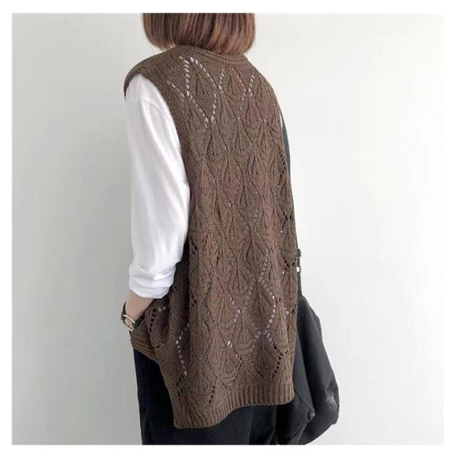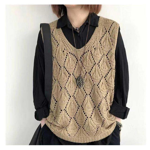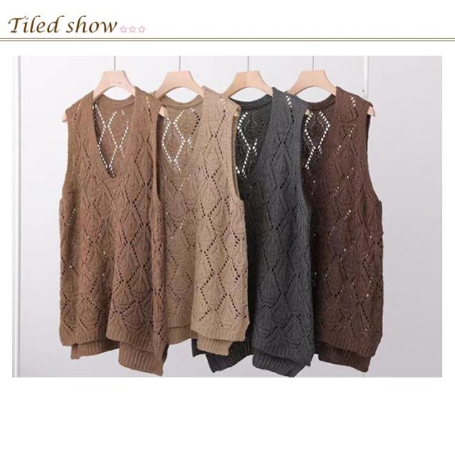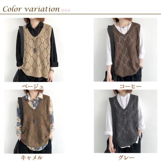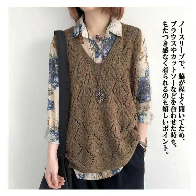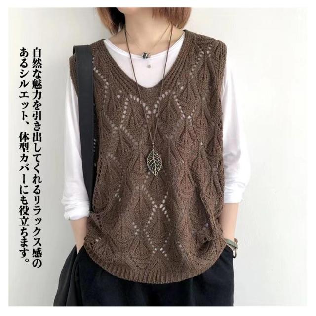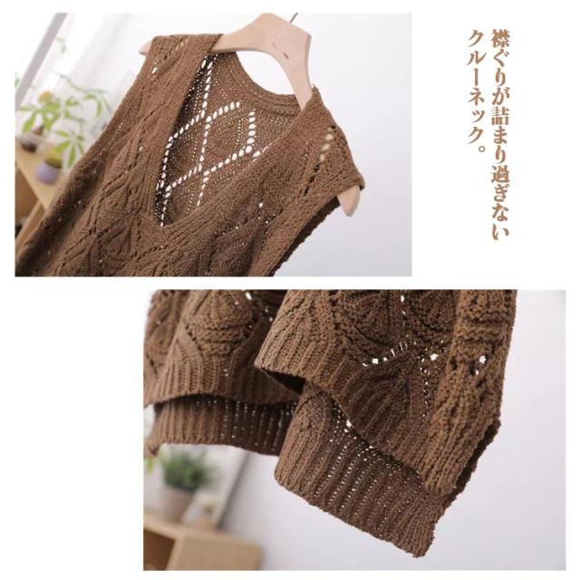 トップス 中空デザイン ノースリーブ レディース ゆったり ペプラム ニット ニット おしゃれ ニット カジュアル 重ね着 薄手 オーバーサイズ 春 秋 冬
