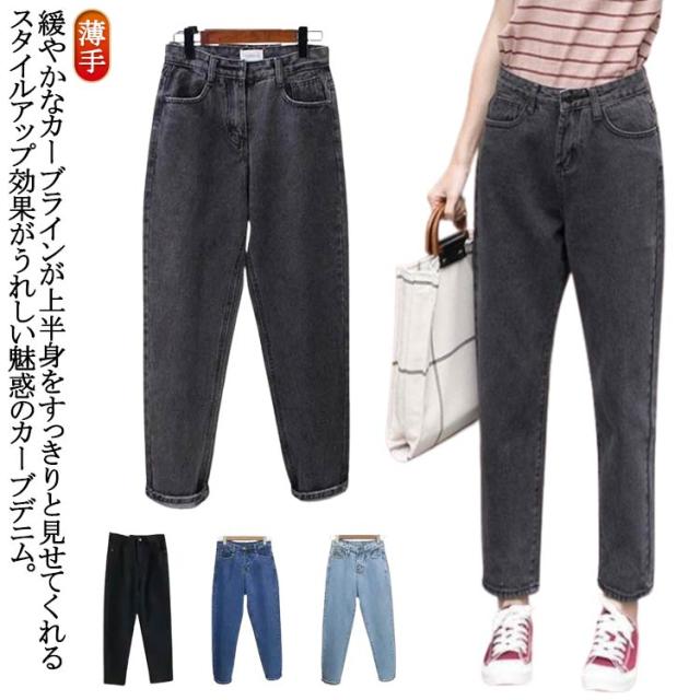 ワイド ボトム パンツ コクーンパンツ ワイドパンツ デニム デニムパンツ ハイウエスト デニムパンツ カーブパンツ 夏 レディース カジュアル 薄手 カーブ ゆったり カーブ 体型カバー 軽量 バルーンパンツ 大きいサイズ 大人 カーヴィーパンツ 黒 ブラック