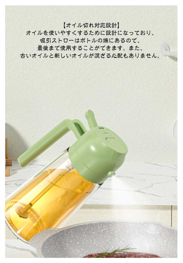 オイルスプレー 料理用 オイルスプレー スプレーボトル スプレー容器 2WAY 極細のミスト 霧吹き 防塵 ミストスプレー 450ml オイルボトル 油さし オイル差し 透明 ノンフライヤー 漏れ防止 キャンプ キッチン用品 詰め替え容器