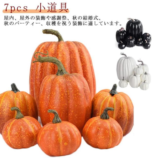 ハロウィン diy ハロウィン パンプキン 置物 7pcs 飾り 小道具 カボチャ アクセサリー ハロウィンカボチャ オーナメント 屋外 玄関 パーティー 店舗 撮影 オブジェ インテリア かわいい ホワイト ブラック