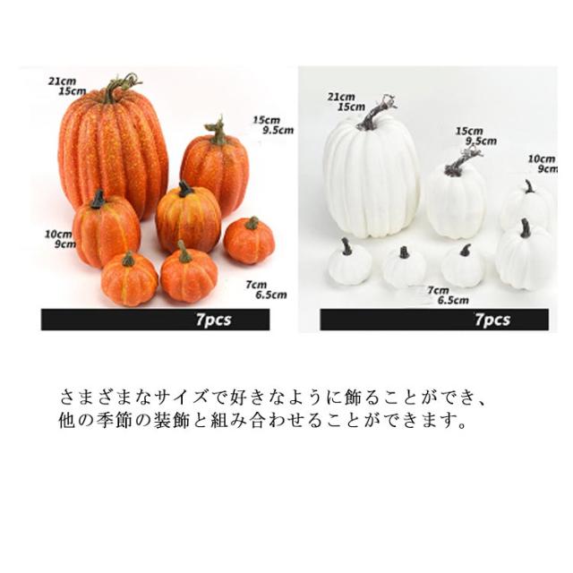 | 屋内、屋外の装飾や感謝祭、秋の結婚式、秋のパーティー、収穫を祝う装飾に適しています。 7個セットで大買い得。 ホワイト、ブラック、オレンジの3色から選択できます。 さまざまなサイズで好きなように飾ることができ、他の季節の装飾と組み合わせることができます。 幼稚園の教育ツール、写真撮影の小道具などとしても使用できます。 | |