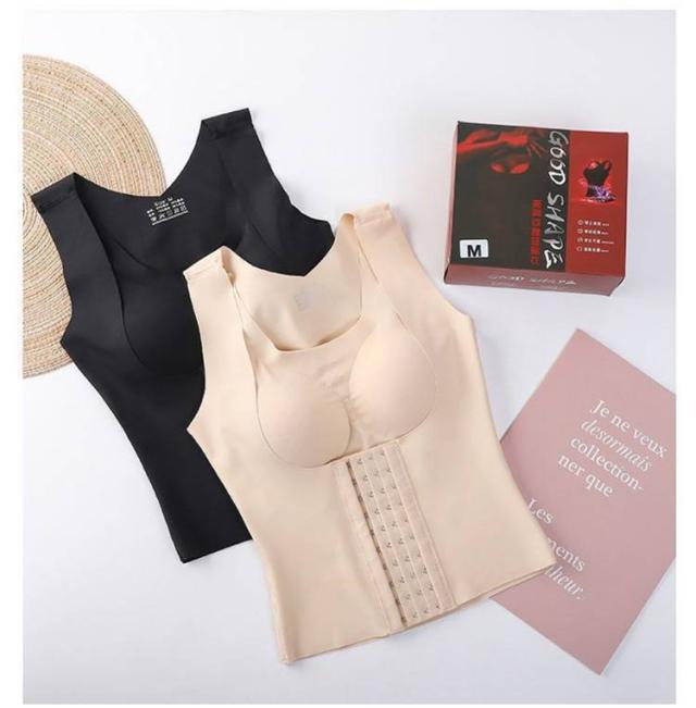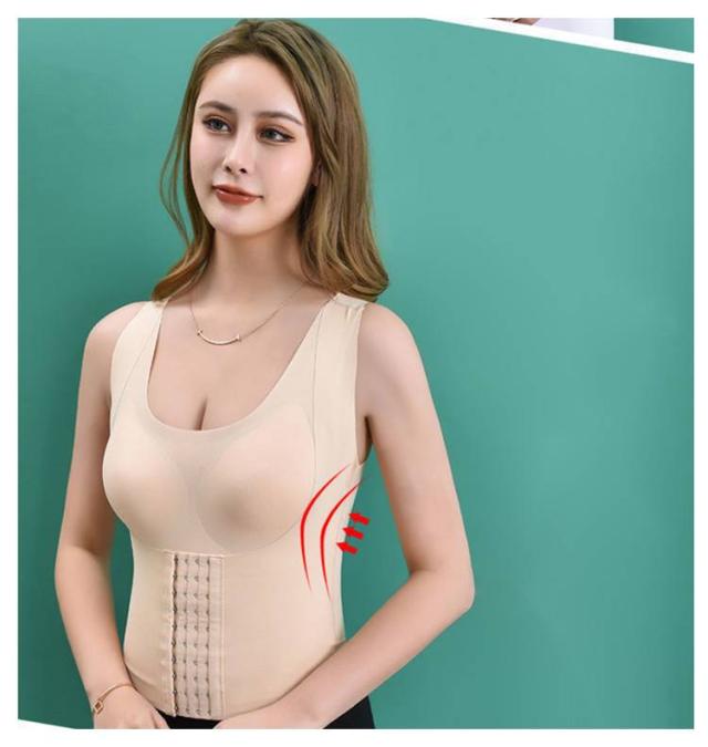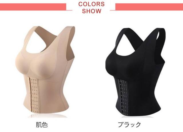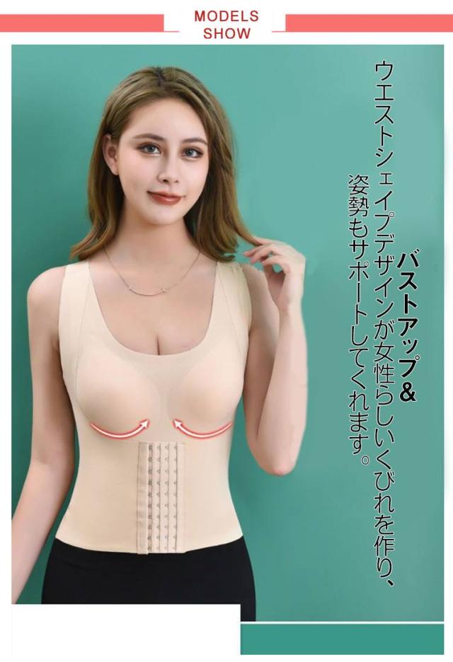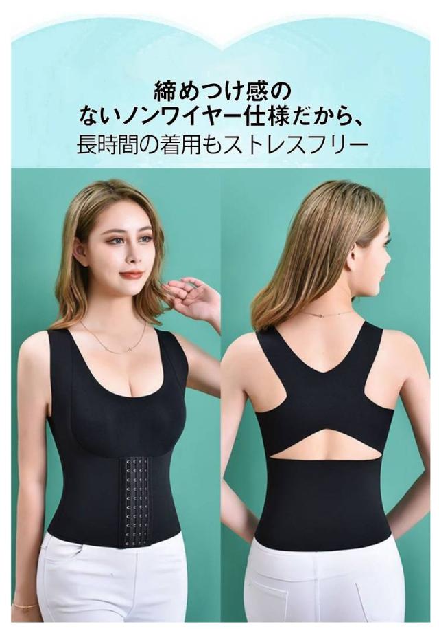 バスト レディース 着圧ブラトップ タンクトップ 着圧ブラトップ カップ付き フロントホック ウエストシェイプ ダイエット ウエスト引き締め インナー 猫背矯正 補正下着 ノンワイヤー パット付き