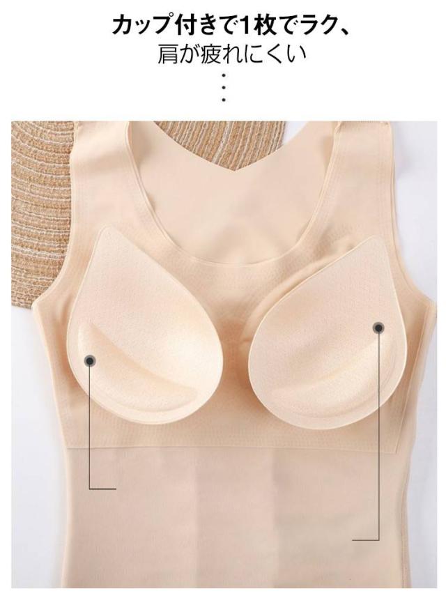 | ・着るだけでバストメイク完成♪ ・カップ付きで1枚でラク、肩が疲れにくい ・締めつけ感のないノンワイヤー仕様だから、長時間の着用もストレスフリー◎ ・バストアップ&ウエストシェイプデザインが女性らしいくびれを作り、姿勢もサポートしてくれます。 | |