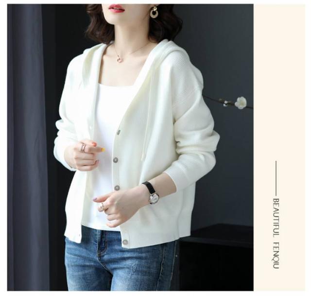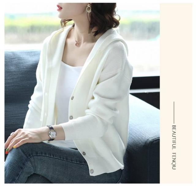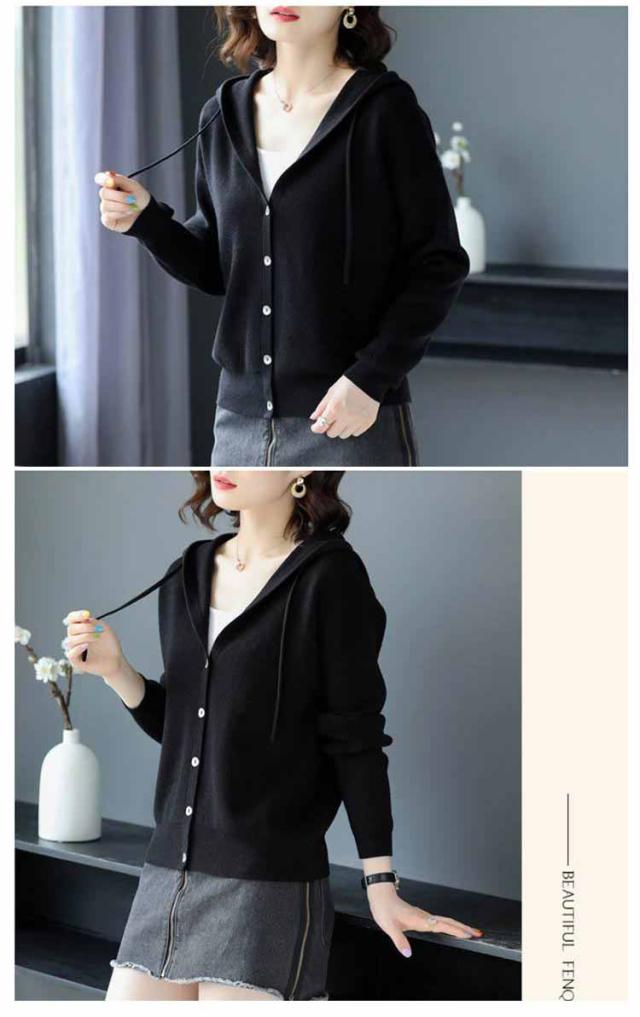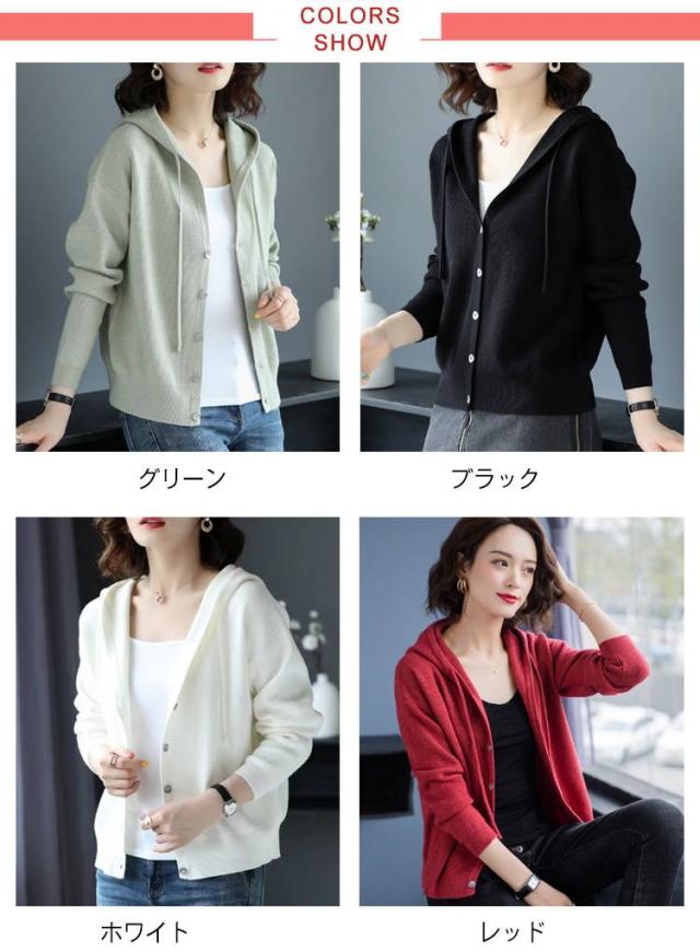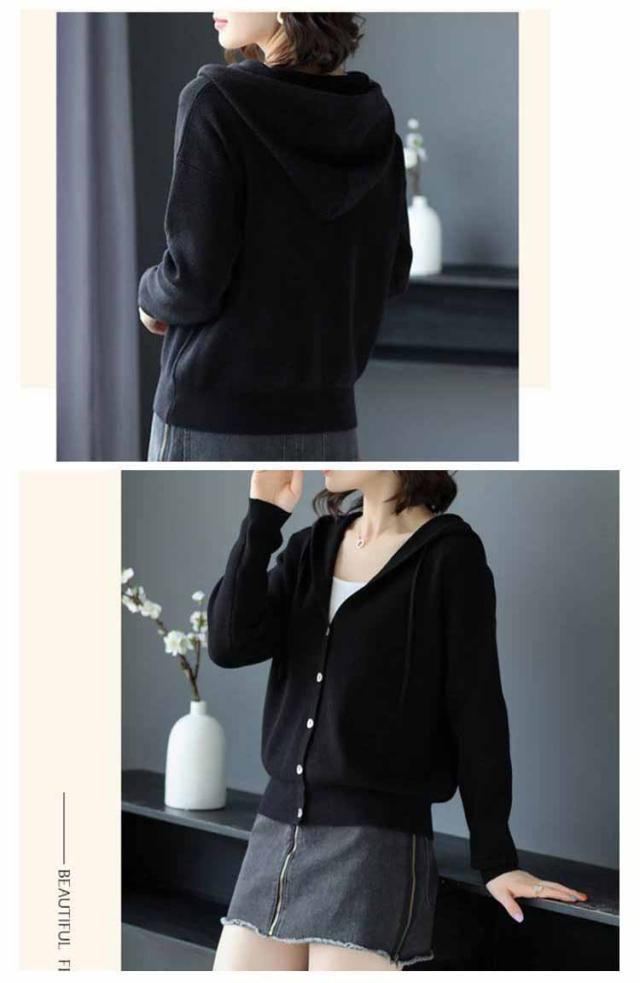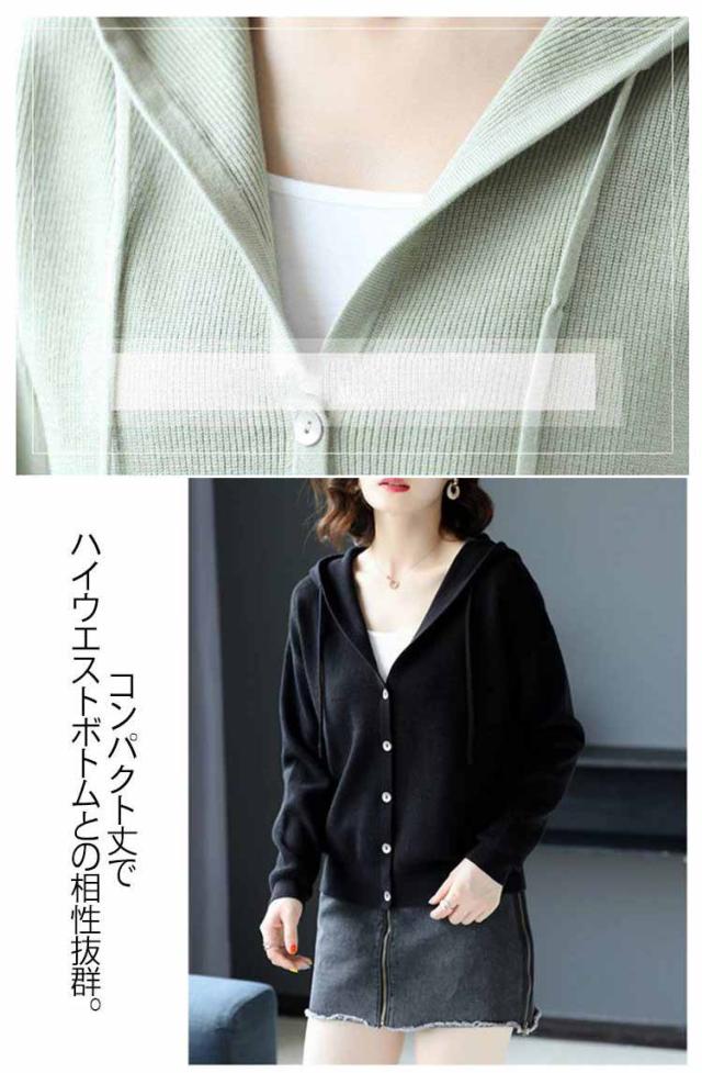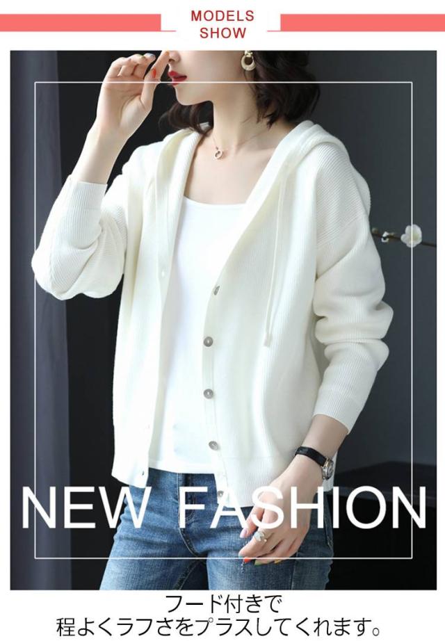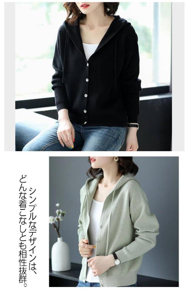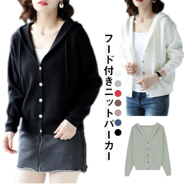 ニットカーディガン パーカー 大人可愛い トップス Vネック フード付き ニットパーカー フーディー カーディガン 羽織 長袖 スリム 細身 ニットパーカー カジュアル
