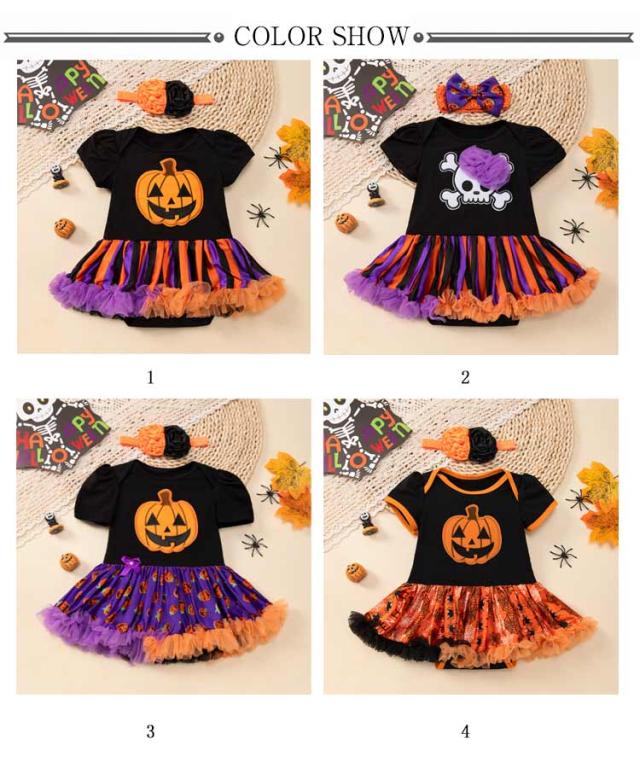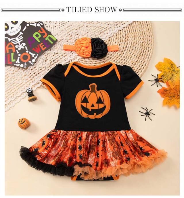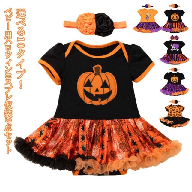 子供 2点セット 衣装 女の子 ハロウィン ベビー服 かぼちゃ チュールワンピース ロンパース コスプレ仮装 魔女 ハロウィン仮装 悪魔 ハロウィン 新生児服 カバーオール ヘアバンド コスチューム衣装 パーティー イベント ドレス 文化祭 撮影 可愛い