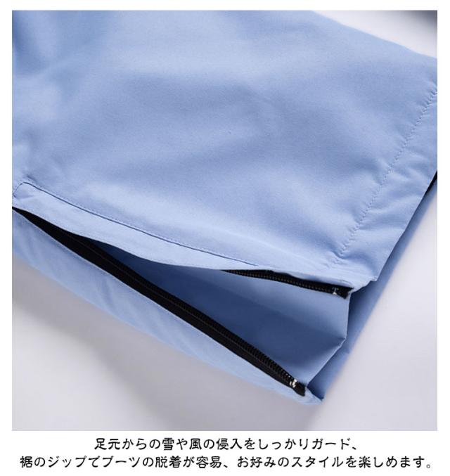 | 撥水防風保温スキーパンツ。 生地表面には撥水加工を施し、水と汚れが付着することを防ぎます。 パンツ上部にゴムが付いているため、ズレ落ちることがなく、防寒対策としての機能もあります。 肩ベルトは完全着脱が可能で、気分や着こなしに合わせて自由自在。 全面に中綿を入れることで、防寒性をさらにアップ!お体を寒さから守ります。 足元からの雪や風の侵入をしっかりガード、裾のジップでブーツの脱着が容易、お好みのスタイルを楽しめます。 | |