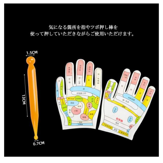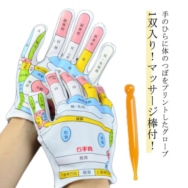 手ツボ ツボ押し 手袋マッサージ ツボが見える手袋 マッサージ棒付 ストレス解消 1双入り 柔らかい 肌に優しい 通気性 マッサージ 両面印刷ツボ 手のひら 伸縮性あり マッサージグローブ グッズ ツボが見える手袋 洗濯OK 男女兼用