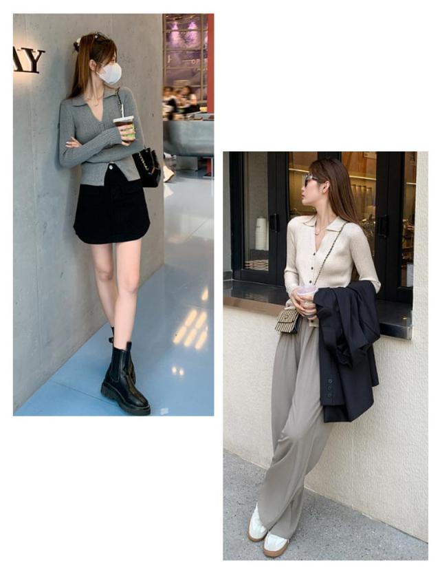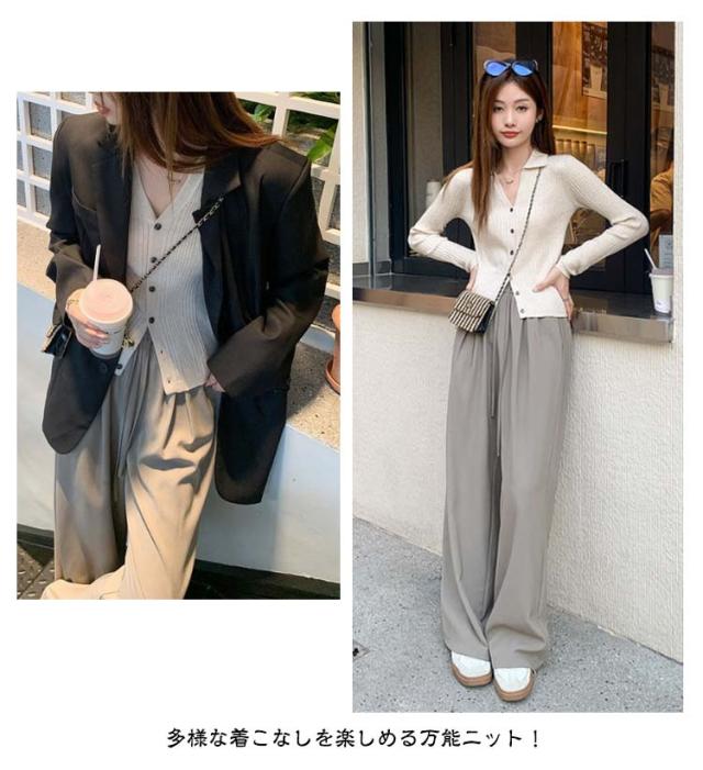 | 襟付きデザインが可愛い、リブニットカーディガン。 洗練されたシンプルさと快適さを兼ね備えたリブニットカーデ。 柔らかく伸縮性のあるリブニット素材が、体のラインに優しくフィットし、自然な美しいシルエットを作り出します。 深めのVネックが顔周りをすっきり見せ、小顔効果も期待出来ます◎ 春はもちろん秋冬ならではリブスリーブのデザインなので、秋も羽織りを使うと重宝します。 多様な着こなしを楽しめる万能ニット! | |