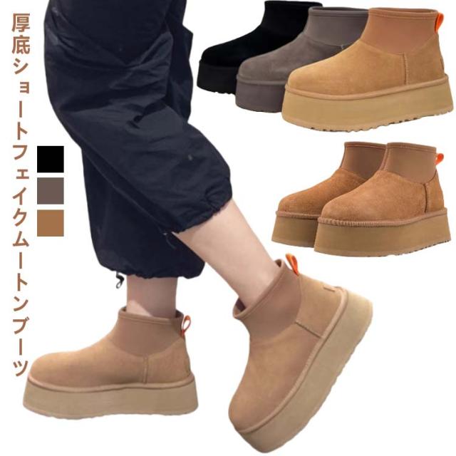 ブーツ ショート 裏起毛 合成スエード ネオプレン レディース シューズ エコファー もこもこ 痛くない ムートンブーツ 履きやすい レディース 厚底 靴 滑らない 歩きやすい 暖かい あったか