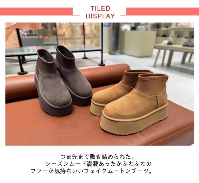 | ・厚底ショートフェイクムートンブーツ ・つま先まで敷き詰められた、シーズンムード満載あったかふわふわのファーが気持ちいいフェイクムートンブーツ。 ・ころんとした丸いフォルムでソックスやタイツにもマッチ ・程よいボリューム感にふかふかの履き心地で、冬の足元を暖かくオシャレに彩ります。 | |