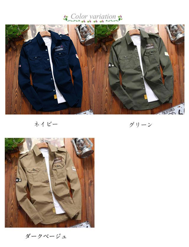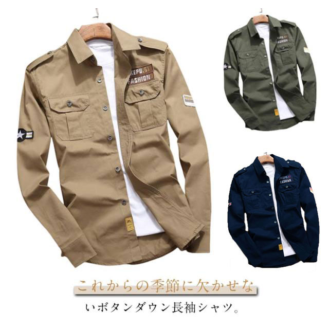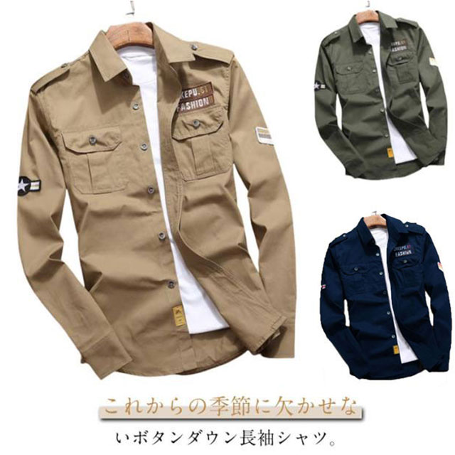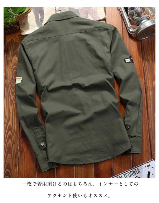 ミリタリーシャツ メンズ 長袖シャツ コットン カジュアルシャツ アメカジ ワークシャツ 通勤 春秋 トップス シャツジャケット スリム ポケット付き 無地 カジュアル ストリート 作業服 かっこいい 通学