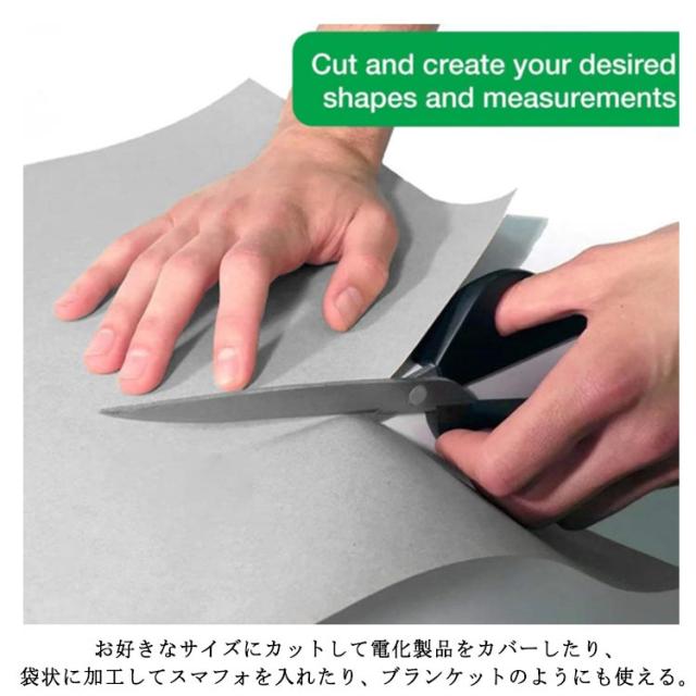 | 【電磁波遮断シート】【1×1.1M】 身の回りの電磁波が気になる電化製品(PC・スマートフォン・TV・無線ルーター・電子レンジなど)の電磁波を遮断するシート。 お好きなサイズにカットして電化製品をカバーしたり、袋状に加工してスマフォを入れたり、ブランケットのようにも使える。 ドライブレコーダー設置によるカーナビ、ワンセグ、ラジオ、スマートキーとの電波干渉やノイズ発生の対策などにも使える。 クレジットカードの磁気に記録されている情報を抜き出すスキミングや、スマートキーの特性を利用した車の盗難の防止にも。 送電線、配電線、携帯電話基地局の近くにお住まいの方、電磁波過敏症の方や、妊娠中で電磁波による影響が不安な方などにも。 | |