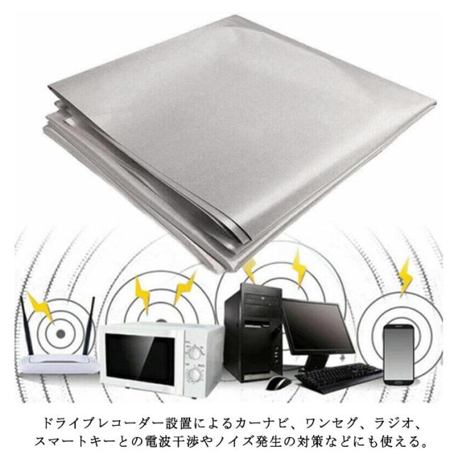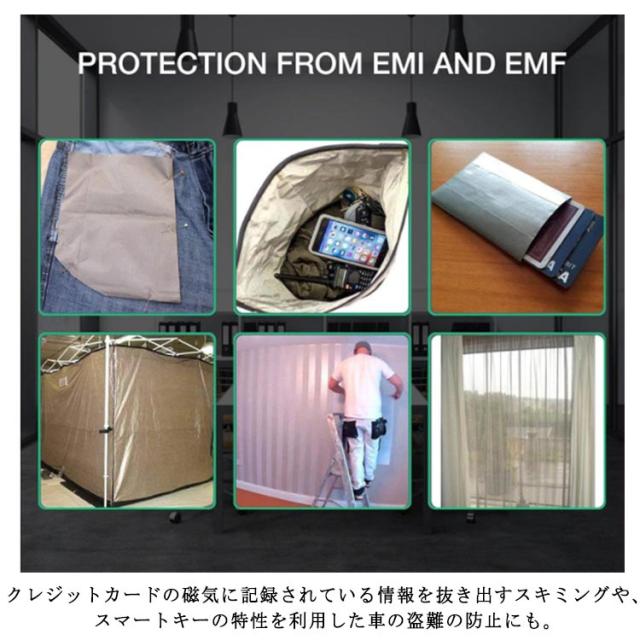 | 【電磁波遮断シート】【2×1.1M】 身の回りの電磁波が気になる電化製品(PC・スマートフォン・TV・無線ルーター・電子レンジなど)の電磁波を遮断するシート。 お好きなサイズにカットして電化製品をカバーしたり、袋状に加工してスマフォを入れたり、ブランケットのようにも使える。 ドライブレコーダー設置によるカーナビ、ワンセグ、ラジオ、スマートキーとの電波干渉やノイズ発生の対策などにも使える。 クレジットカードの磁気に記録されている情報を抜き出すスキミングや、スマートキーの特性を利用した車の盗難の防止にも。 送電線、配電線、携帯電話基地局の近くにお住まいの方、電磁波過敏症の方や、妊娠中で電磁波による影響が不安な方などにも。 | |