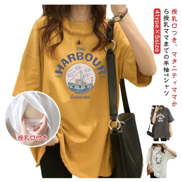 | 4type×5size 授乳口つき、マタニティママから授乳ママまでの半袖Tシャツ | |