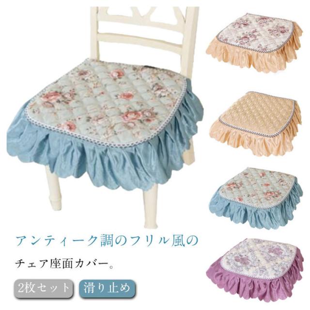 滑り止め 2枚セット 椅子 チェアパッド 座面カバー 座布団 座面のみ 椅子クッション ダイニングチェアクッション チェアーカバー 花柄 フリル 椅子カバー 座面 洗える