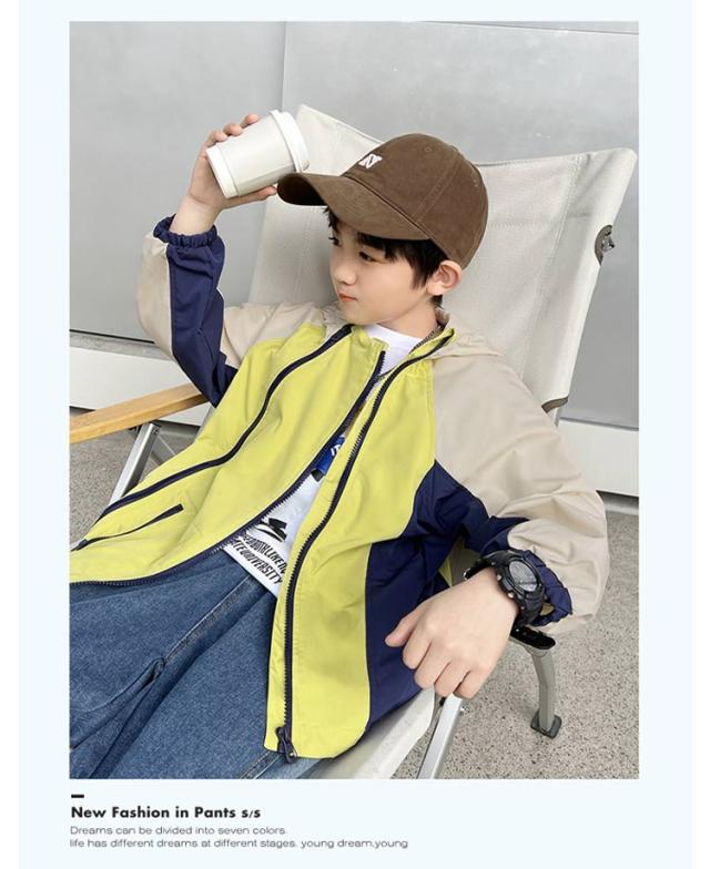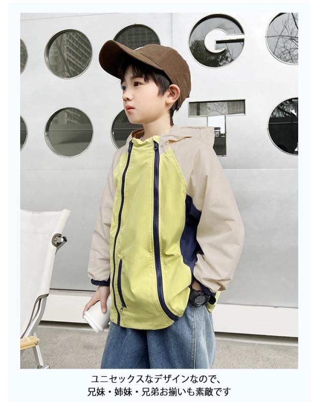 ウィンドブレーカー キッズ ジュニア ジャケット 子供服 マウンテンパーカー 配色 切り替え アウター 秋コート パーカー 韓国ファッション ダブルジッパー スプリングコート おしゃれ 120 130 140 150 160 170cm ジャンパー 女の子 男の子 送料無料
