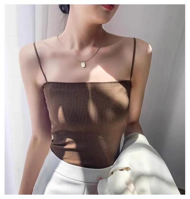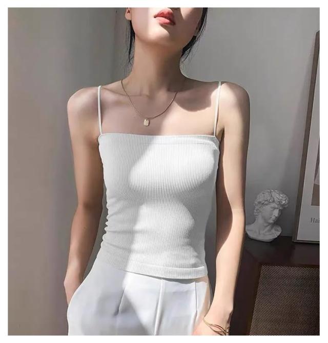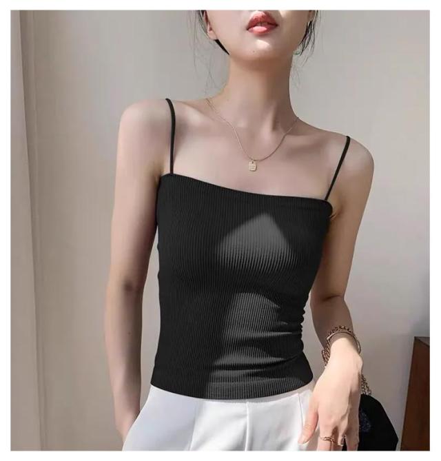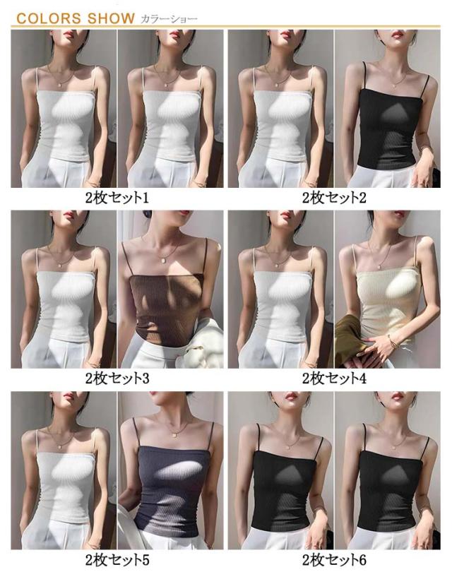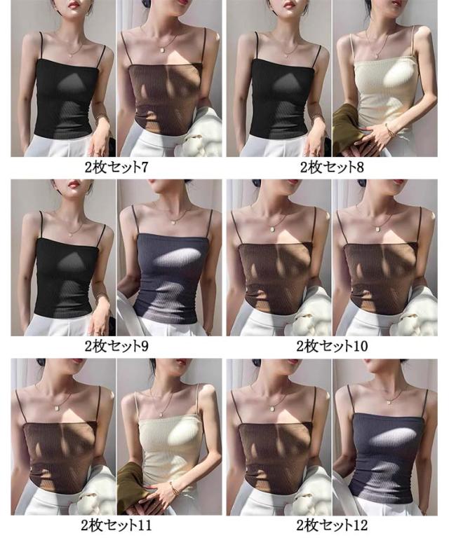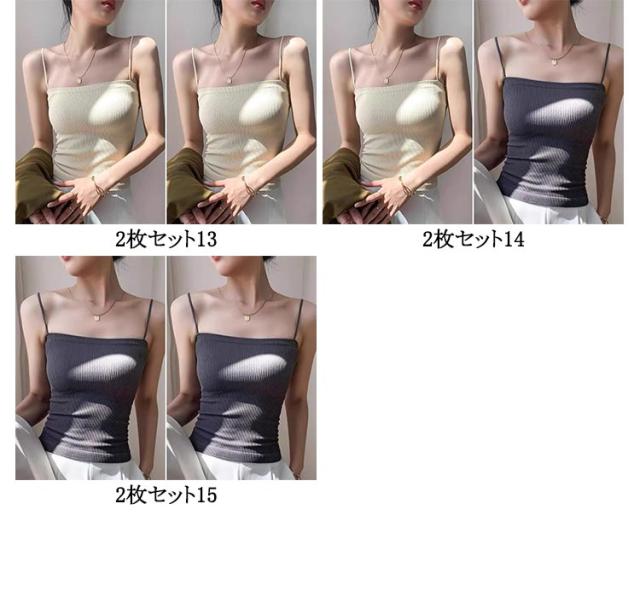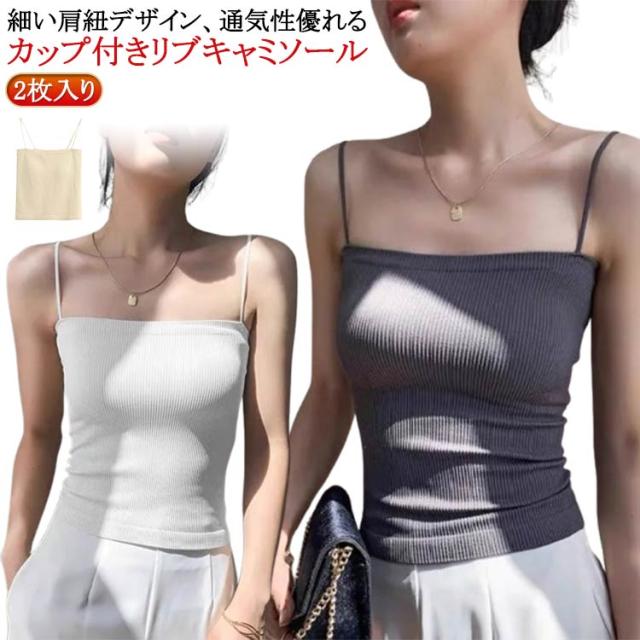 シンプル レディース ブラトップ リブ キャミソール インナー ブラトップ ノンワイヤー 無地 カップ ストレッチ カップ付きキャミソール カップ付きインナー ナローストラップ 2枚入り カップ付きキャミ 見せキャミ 肌着