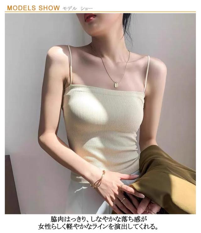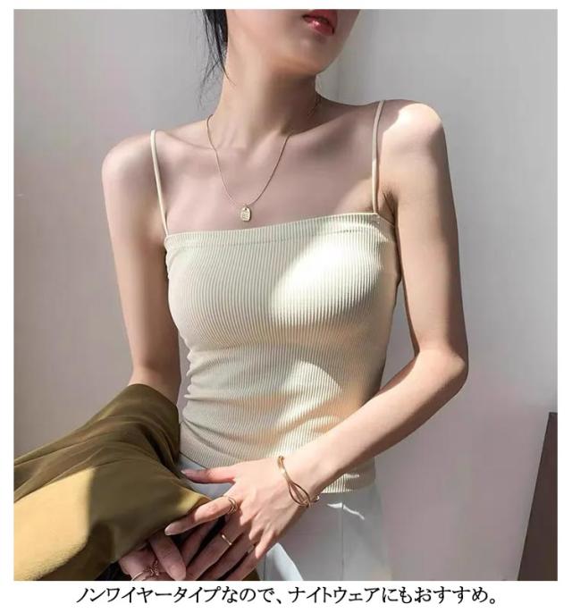 | 細い肩紐デザイン、通気性優れるカップ付きリブキャミソール。 サラッとした爽やかな着心地が叶う生地を使用。 脇肉はっきり、しなやかな落ち感が女性らしく軽やかなラインを演出してくれる。 ノンワイヤータイプなので、ナイトウェアにもおすすめ | |