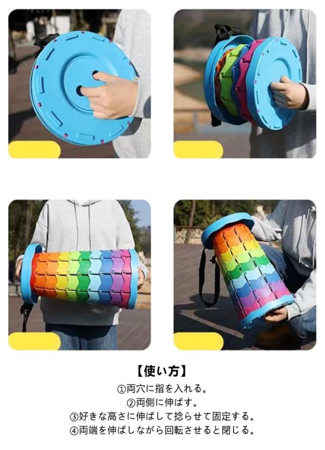| 6-45cm高さを自由に調節可能 長さ調節できるストラップ付き いつでもどこでもパッと出して座れる 折りたたみチェア 全9色 2個セット <お勧めポイント> 【使用時は1秒で展開/収納可能】 パッと出してパッとしまえて本当に便利です。 収納時にはコンパクトに折りたためるので場所を取りません 【使う人に合わせて高さ調整可能!】 6.5cmから45cmまで高さ調整可能なので子供から大人まで使えるので、一家に1個あるとみんなが使えます。 【軽量で持ち運びもストレスフリー!】 コンパクトに折り畳めて取っ手付きなので手提げ可能です。肩掛けでも運べる2WAYです。 【室内室外兼用のミ二折り畳みいす】 コンパクト携帯椅子は待ち行列、キャンプ、花見、バーベキュピクニック.登山、旅行など様々なシーンで活躍します。 ペランダにも!丈夫なおりたたみいす、キッチン簡易椅子、靴の着脱用安い折りたたみ椅子としても使用できます。 【安定力抜群!】 新しいコンパクト折りたたみ椅子は硬いPP材質と鱗式ロック設計を採用しており、下部の滑り止めデザインでより安定 アウトドア折りたたみいすの耐荷重は150 kgにも達し、より耐久性UP!テーブルや踏み台としても使える。 【使い方】 1.両穴に指を入れる。 2.両側に伸ばす。 3.好きな高さに伸ばして捻らせて固定する。 4.両端を伸ばしながら回転させると閉じる。 | |