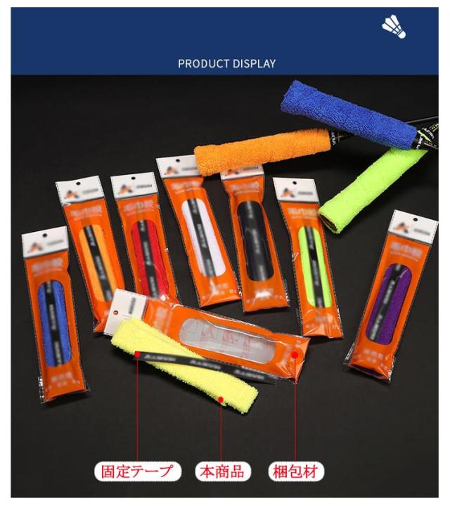 ブルー 抗菌加工で清潔快適!グリップ バドミントン グリップ バドミントン 3本入り吸水性に優れる綿 イエロー ブラック タオルグリップ ホワイト バドミントン レッド パープル オレンジ グリーン