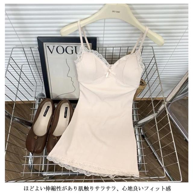 2枚セット ブラカップ付き ワンピース 透け防止 ワンピース ワンピース スリップ ペチコート カップ付き キャミワンピ ルームウェア 透け防止 美シルエット 夏 キャミ 部屋着