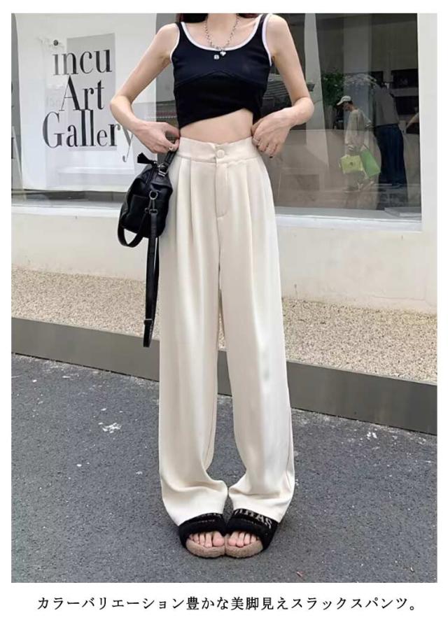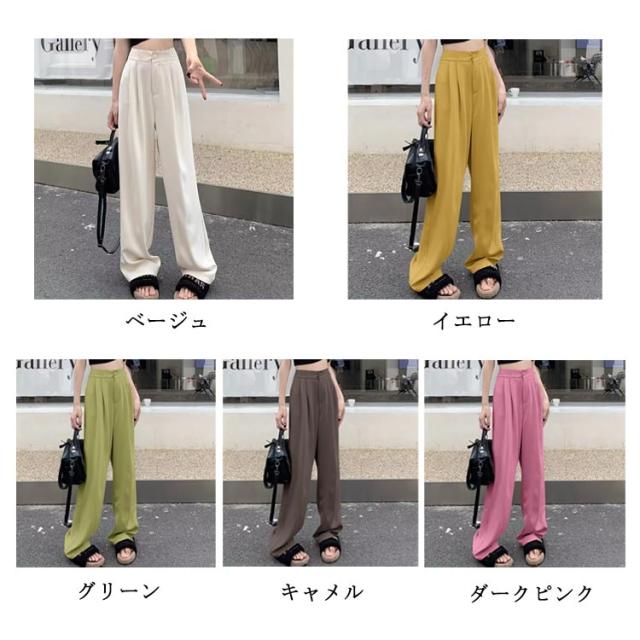 スラックス センタープレス 秋 レディース 春 センタープレス パンツ スラックス カラーパンツ タックパンツ ストレートパンツ オケージョン