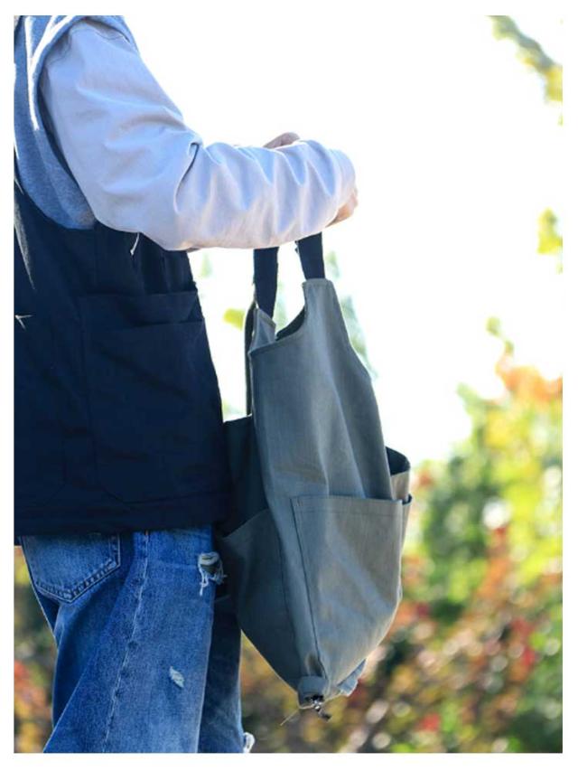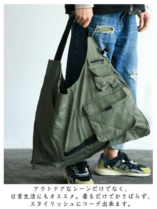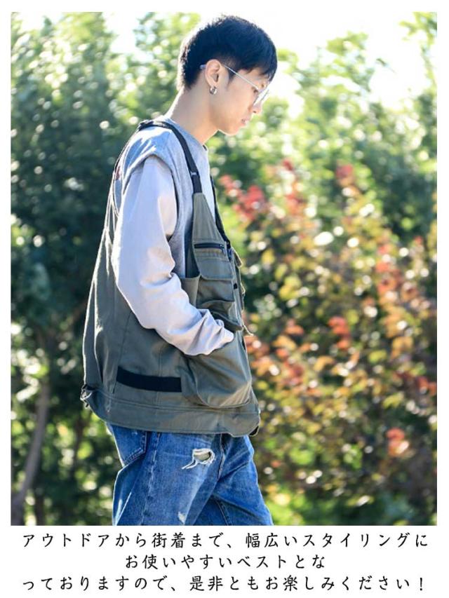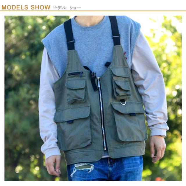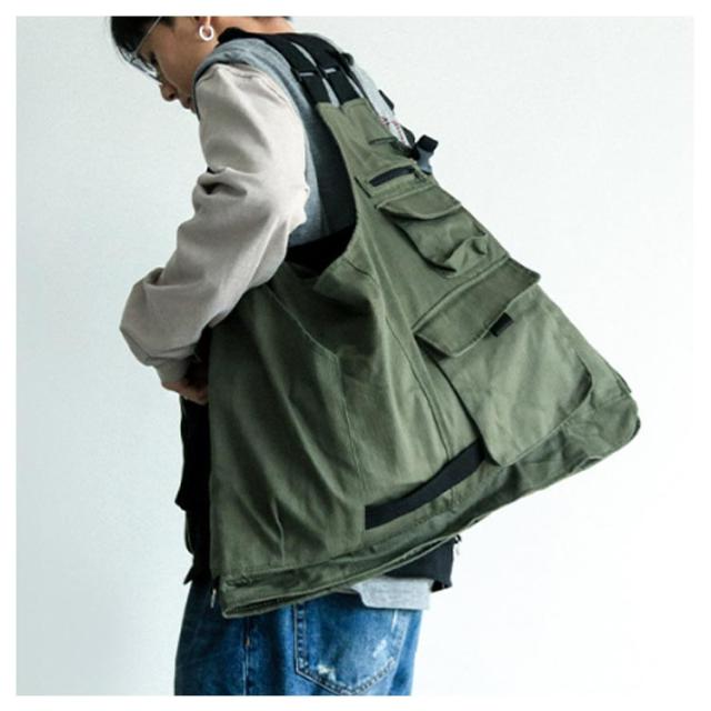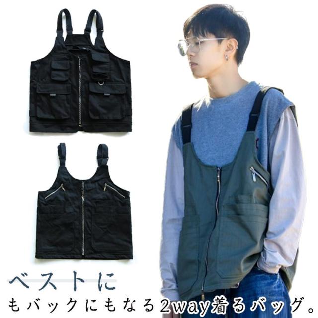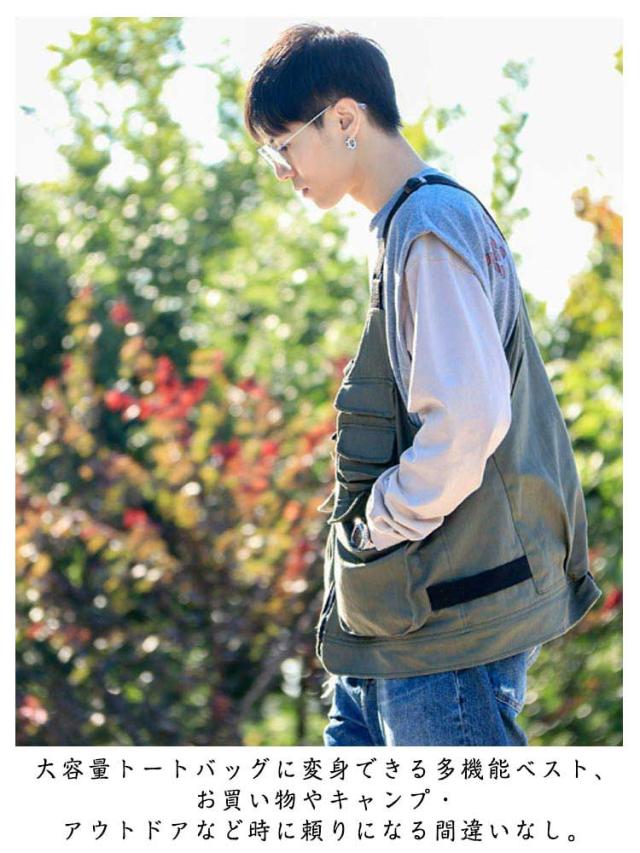 | ベストにもバックにもなる2way着るバッグ。 大容量トートバッグに変身できる多機能ベスト、お買い物やキャンプ・アウトドアなど時に頼りになる間違いなし。 アウトドアなシーンだけでなく、日常生活にもオススメ。着るだけでかさばらず、スタイリッシュにコーデ出来ます。 アウトドアから街着まで、幅広いスタイリングにお使いやすいベストとなっておりますので、是非ともお楽しみください! | |