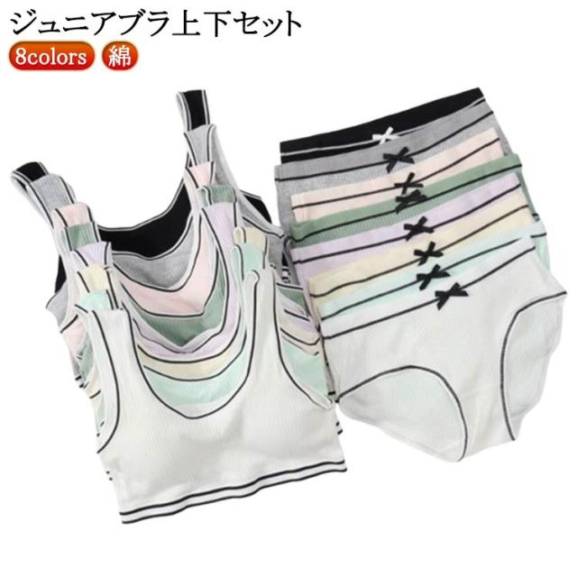 | 8colors ジュニアブラ上下セット 毛玉ができにくく色あせにくい綿素材 通気性がよくやわらかな肌触り お肌にやさしく快適な着心地 | |