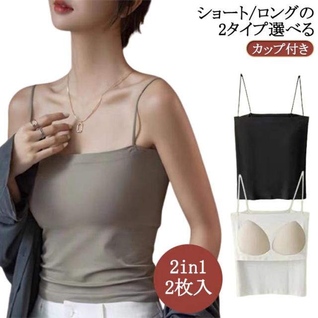 | 2枚セット!ショート/ロングの2タイプ選べる! 細い肩紐デザイン、通気性優れるカップ付きキャミソール。 きれいめ通勤スタイルからカジュアルスタイルまで、幅広く着回しが利くアイテム | |