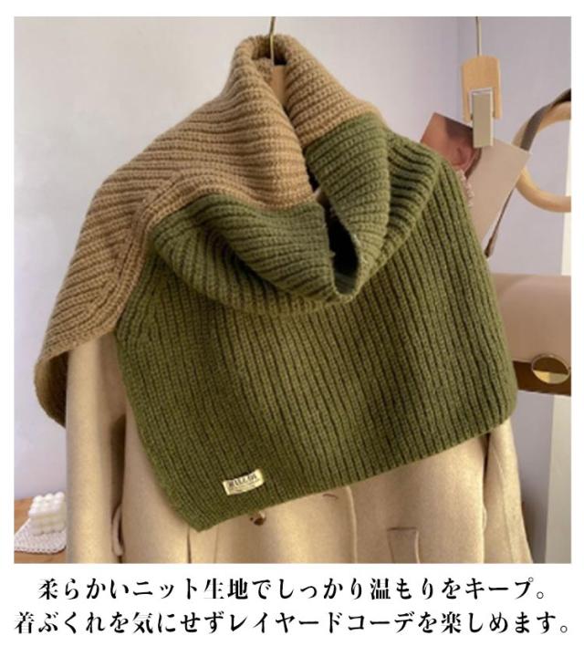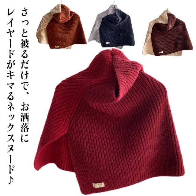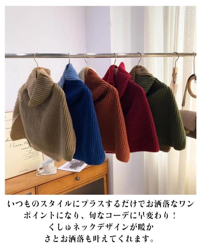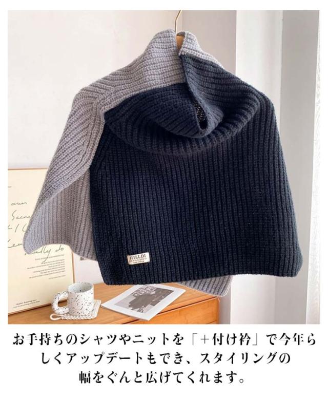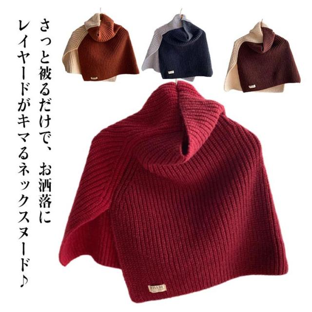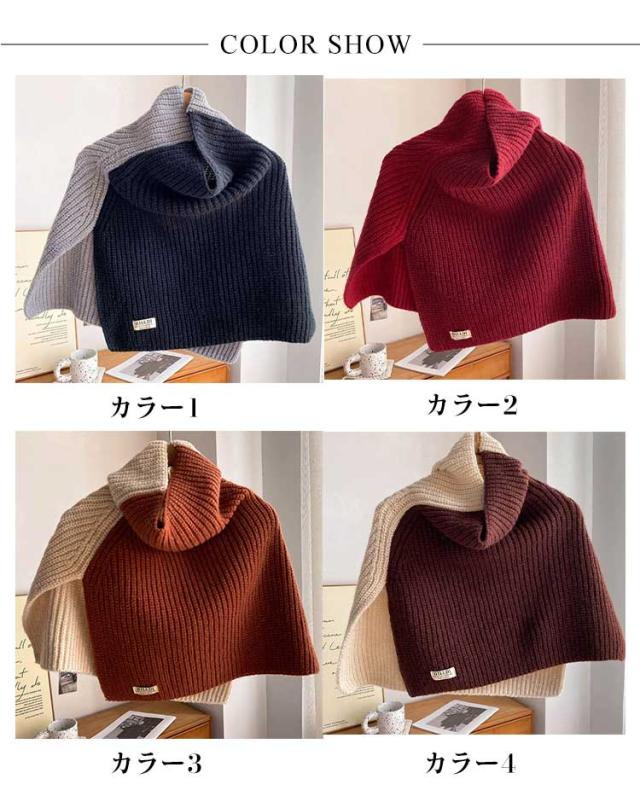 防寒 マフラー プルオーバー ネックウォーマー シンプル ポンチョ レディース 厚手 配色 重ね着 切り替え ニット ハイネック 無地 付け襟 ネックスヌード ケーブル編み レイヤード 重ね着 肩掛け 送料無料 ギフト 起毛感