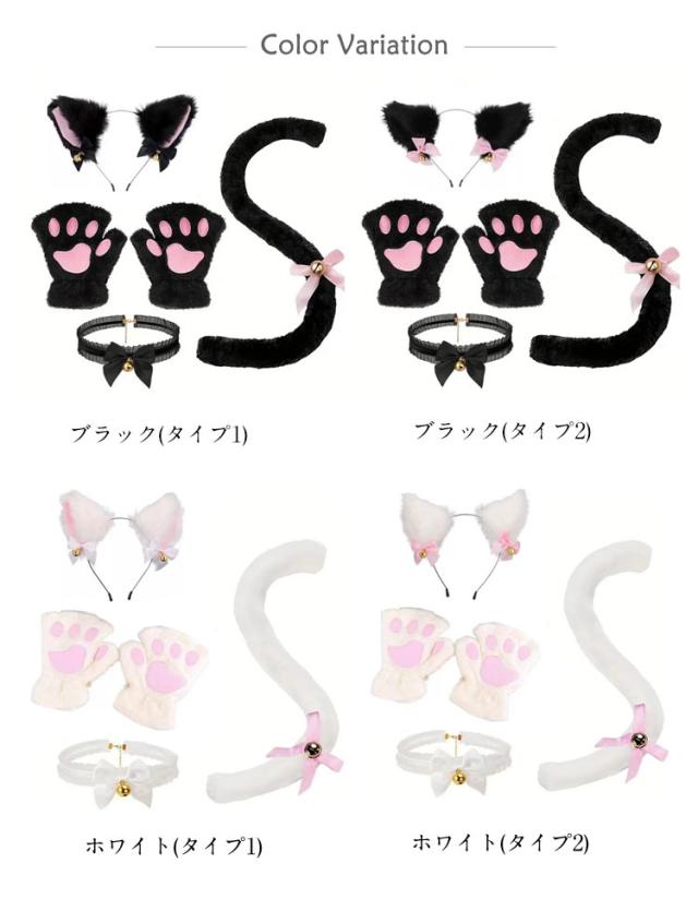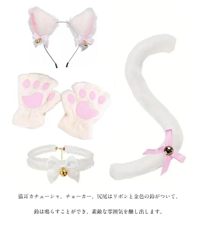 肉球手袋 鈴付き チョーカー にゃんこ カチューシャ 猫耳 猫耳 ハロウィン 仮装 小物 コスプレ 白 黒 猫しっぽ 可愛い 大人用 子供用 4点セット ねこ耳 コスチューム 文化祭 パーティー 黒 白